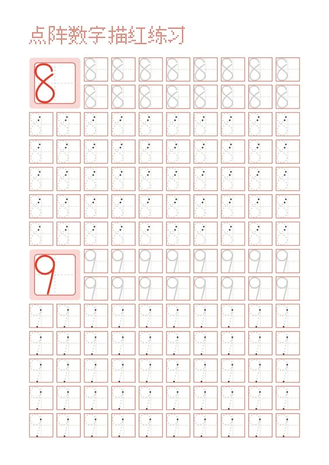 幼小衔接点阵数字描红练习,PDF免费下载
