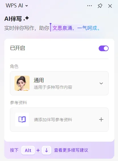 新建文档后 双击 Ctrl 唤醒 AI,点开「伴写」。
