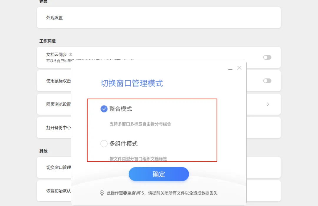 设置完成后,最关键的一步来了:请务必完全退出所有WPS程序,然后重新启动WPS。 只有重启后,你刚才的切换才会生效。