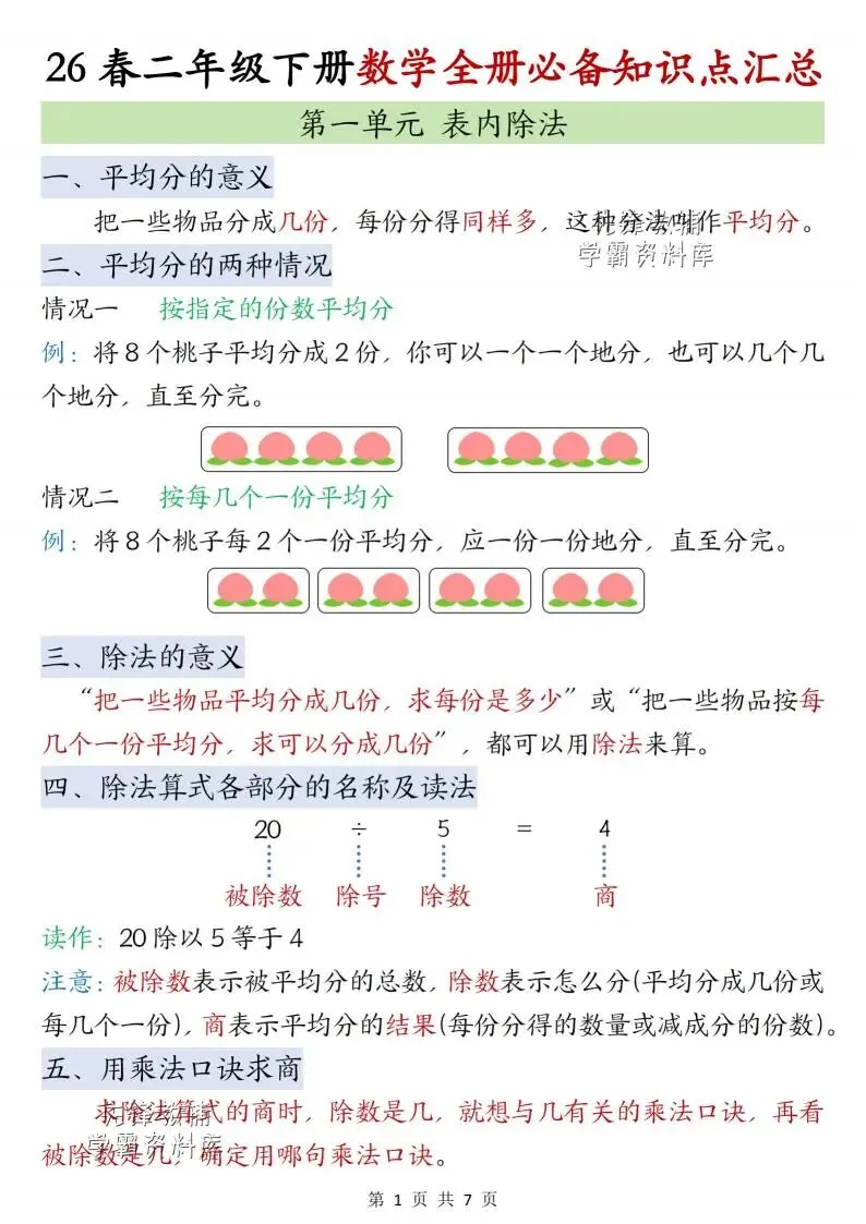二年级(上)数学十大重点母题合集,电子版可打印