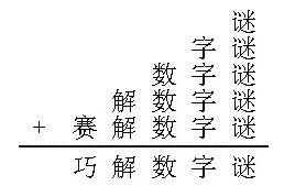 (2)如果“数”为9,两个“解”相加再加上进位2,结果尾数还是“解”,那说明“解”只能是8;5+6+9+8=28,30-28=2,可以。 所以“数字谜”代表的三位数是965。