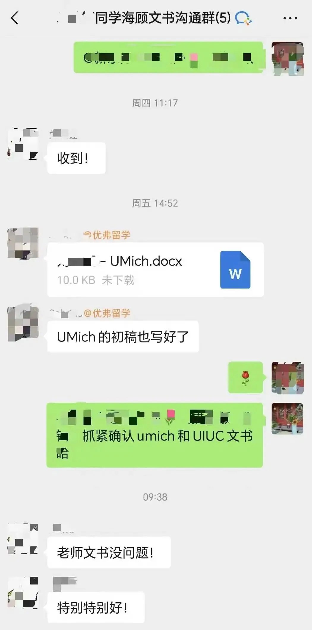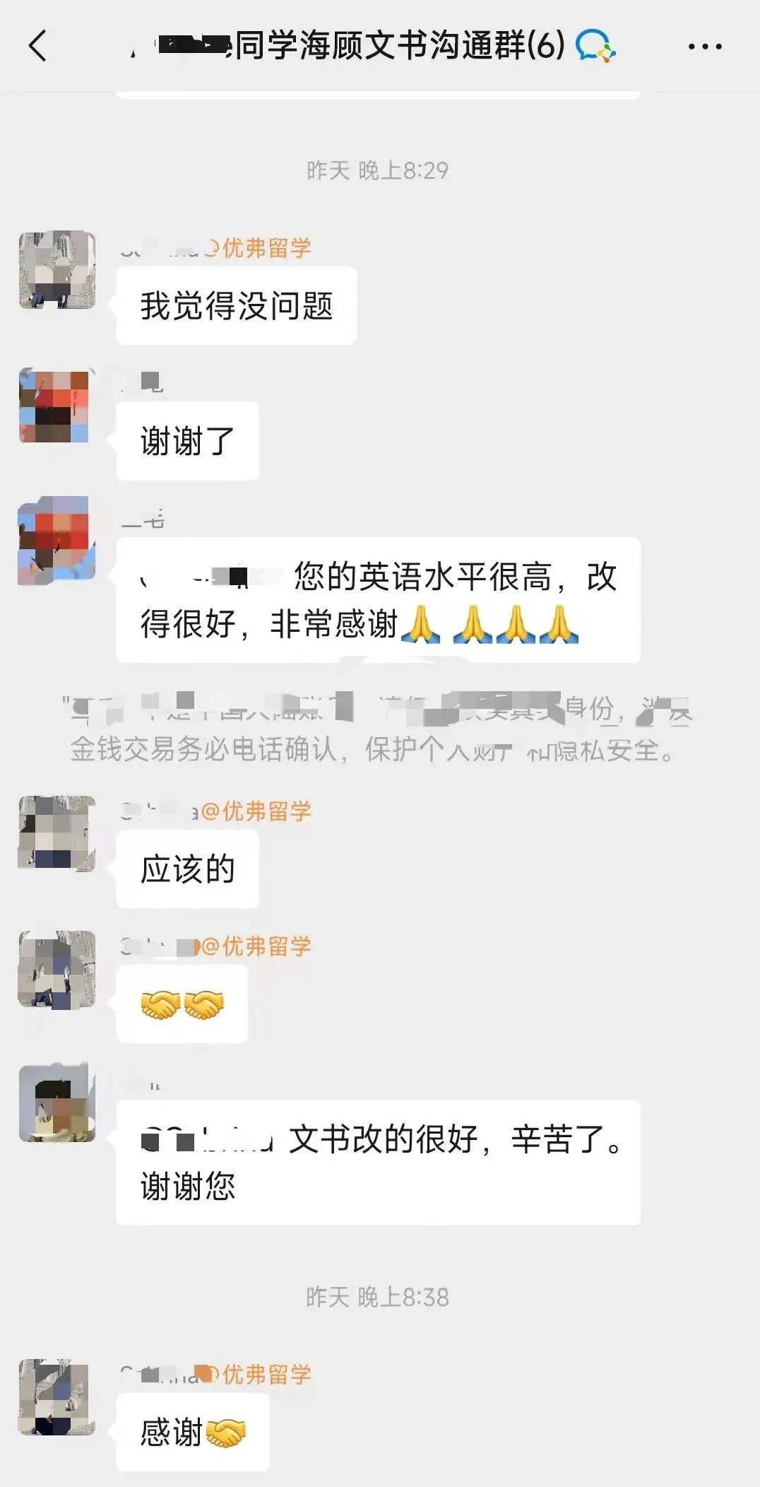优弗留学文书老师的好评截图