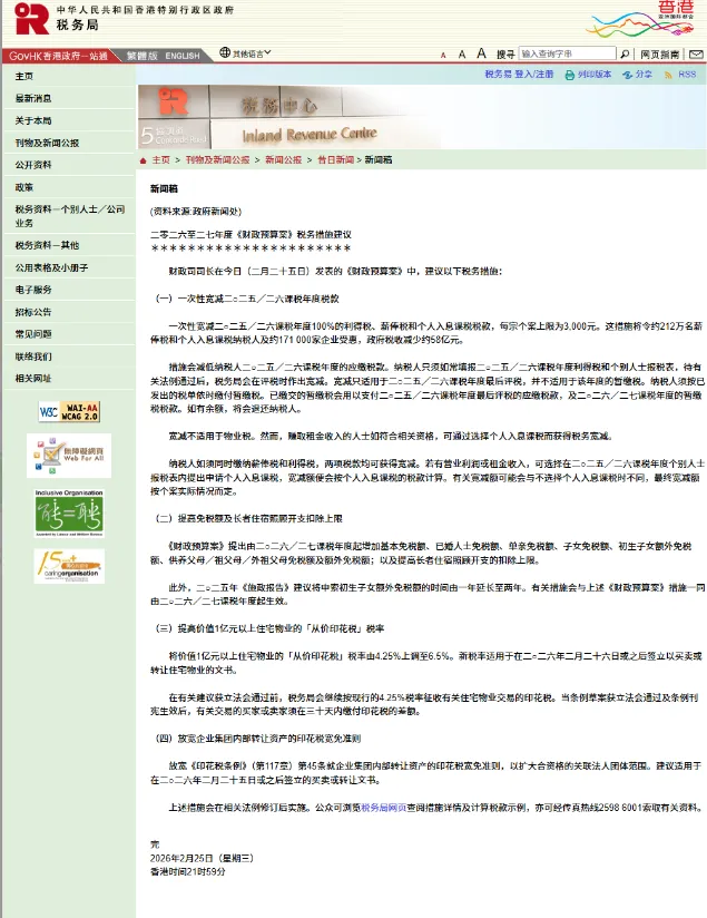 香港特别行政区政府在2026-2027年度《财政预算案》中明确公告,自2026年4月1日起正式恢复商业登记证征费。该调整意味着为期两年的商业登记费宽免政策正式落幕,所有在香港注册设立的企业,无论属于新注册设立还是年度续期情形,其运营合规成本都将相应增加。