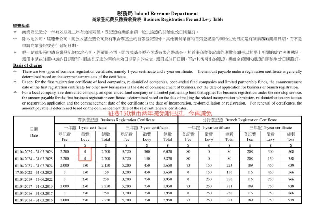 综上,自2026年4月1日起,每家香港注册企业每年将额外增加150港元的商业登记征费支出,长期来看将直接影响企业合规运营成本。