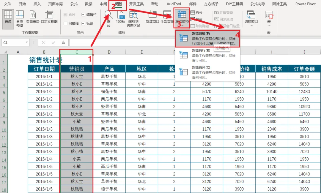 冻结窗格