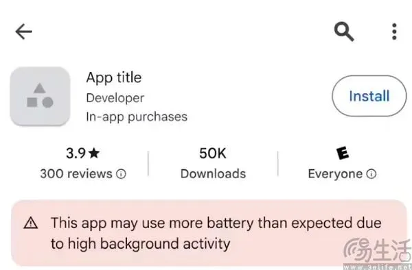 按照谷歌方面的说法,若应用在过去28天内有超过5%的用户会话(Session)中,在熄屏状态下平均后台唤醒达2小时或以上,就会被认定为“耗电异常应用”,此类应用在Play Store的搜索/展示权重受到负面影响。此外,此高耗电应用将在Play Store中会出现醒目的红色警告,并会直接在页面标注“后台活动较多,电池消耗可能高于预期”。