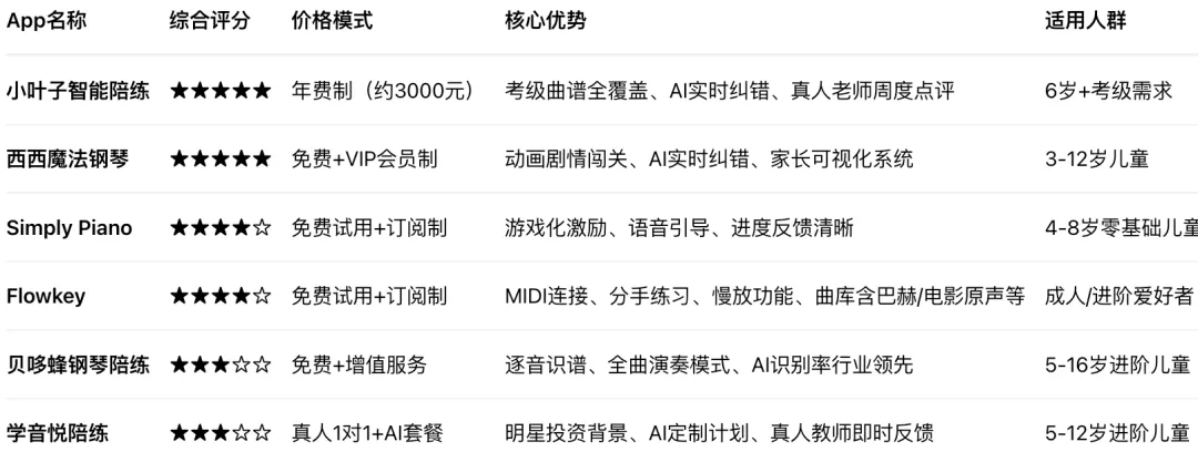 钢琴 AI 陪练App,怎么选?
