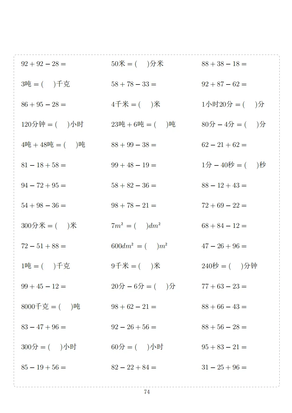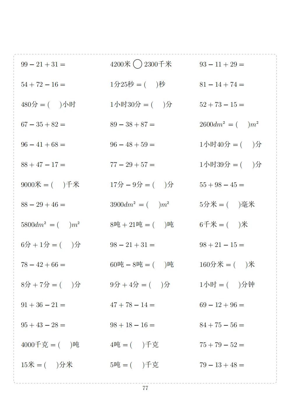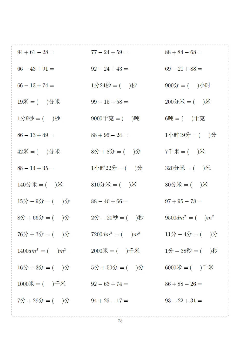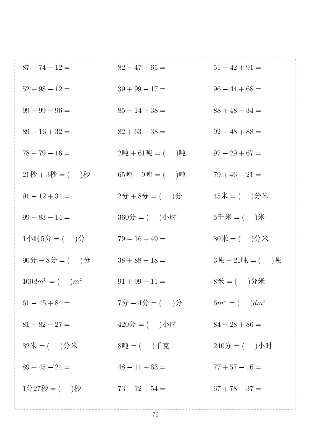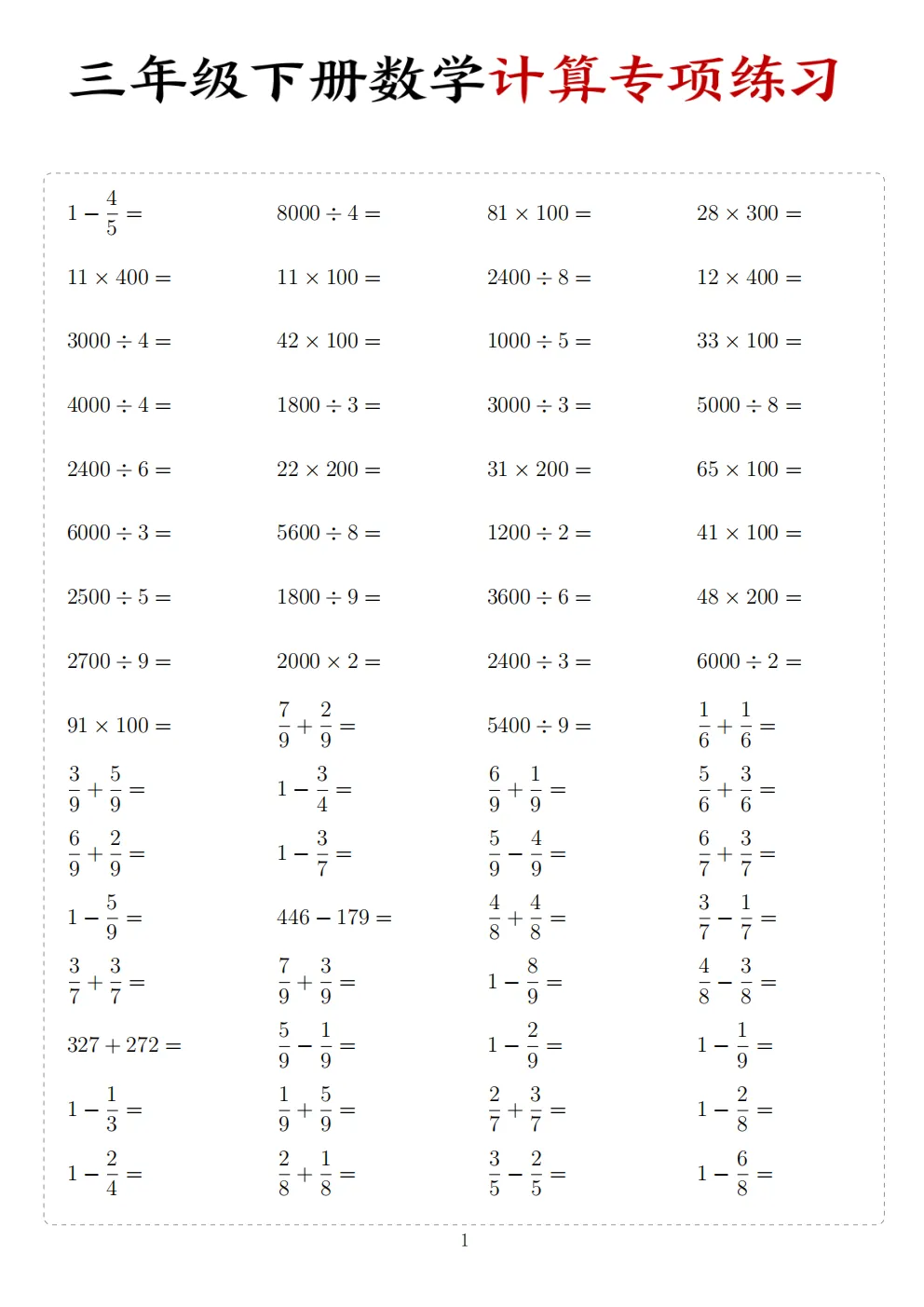 三年级下册数学计算专项练习|电子版可打印