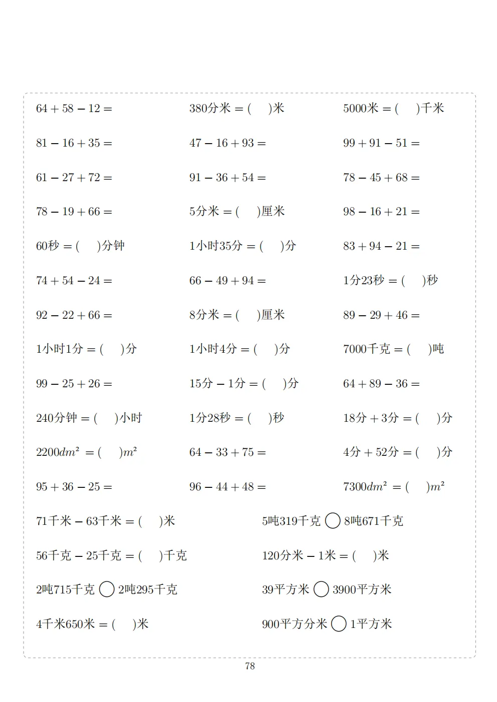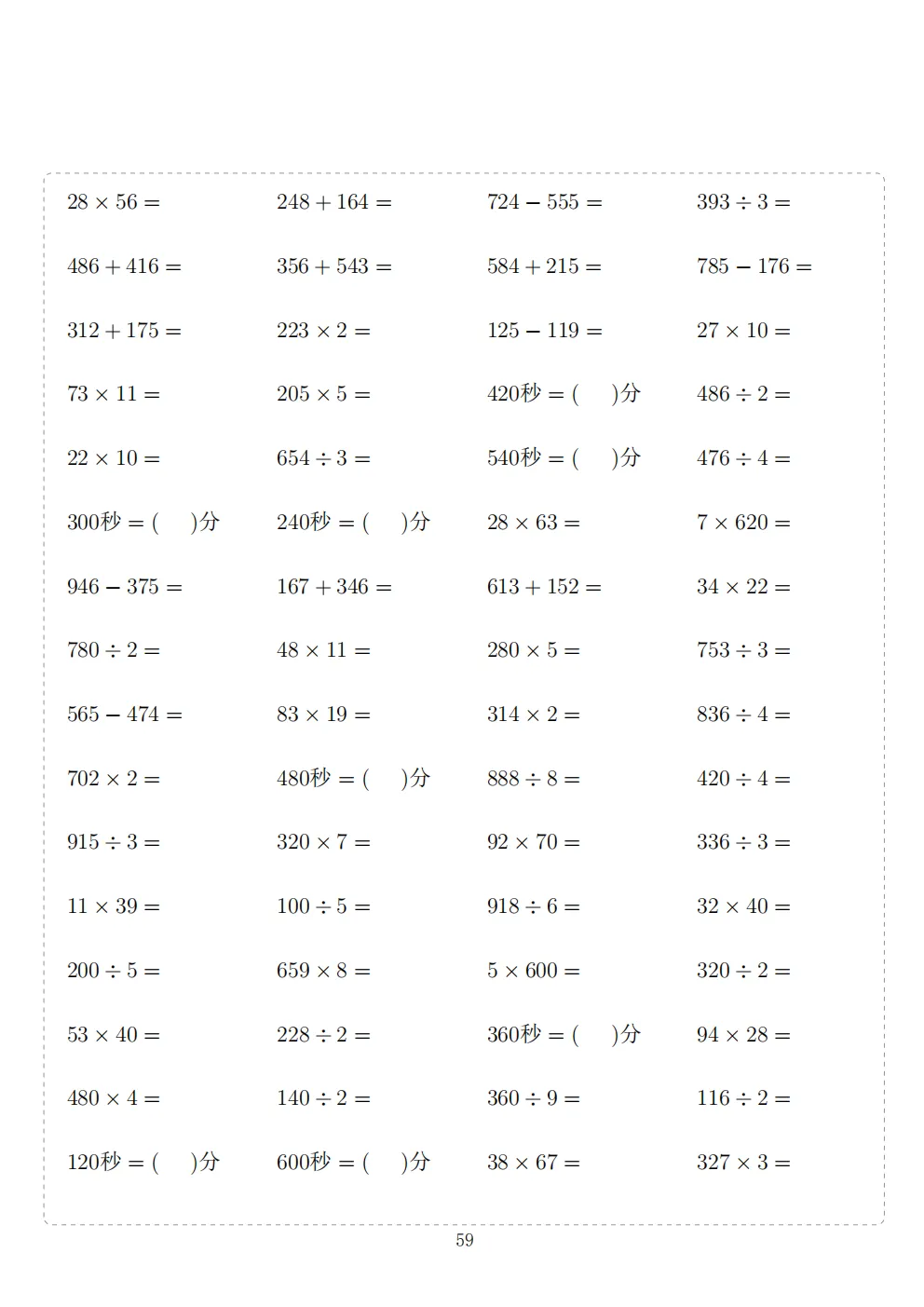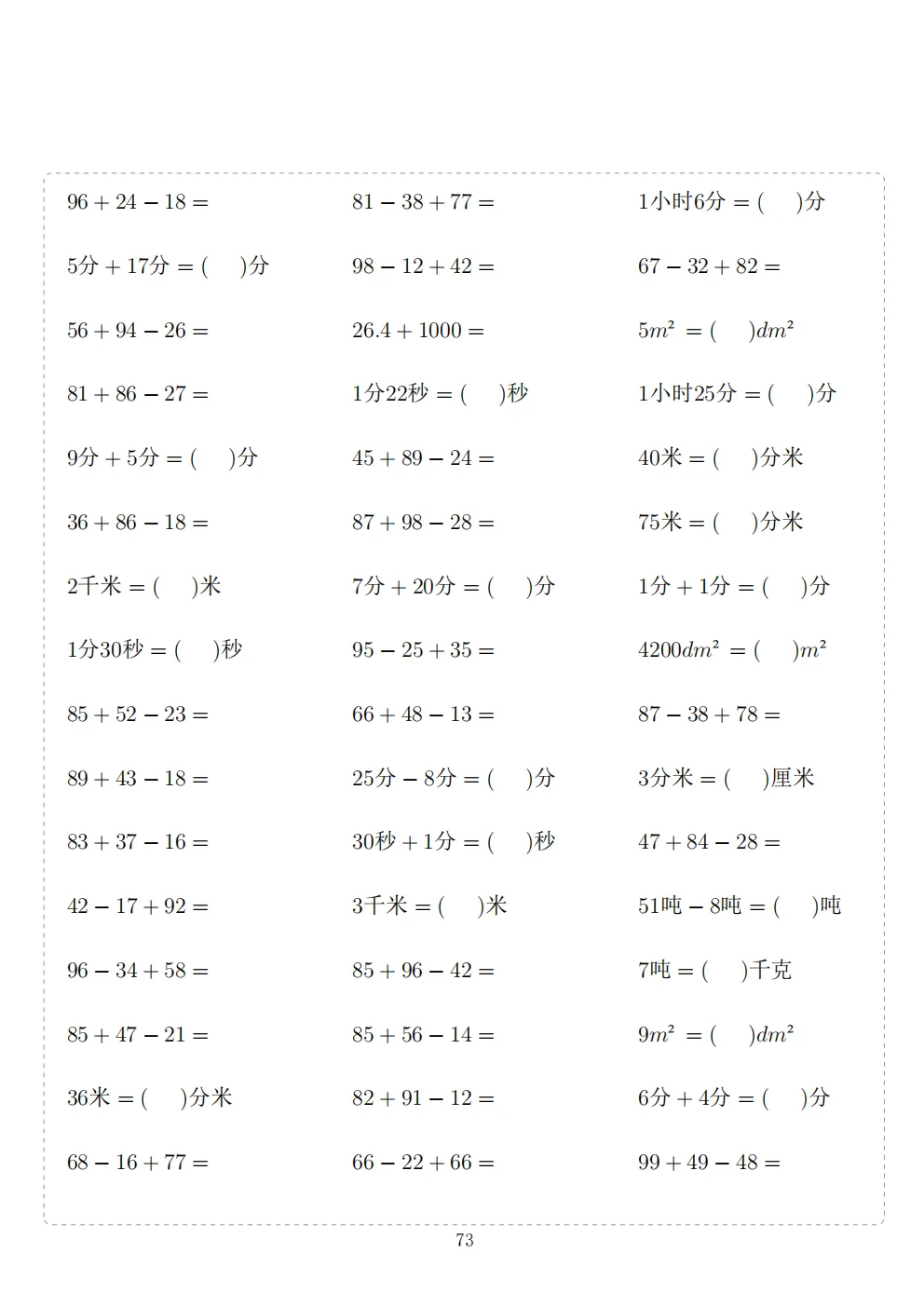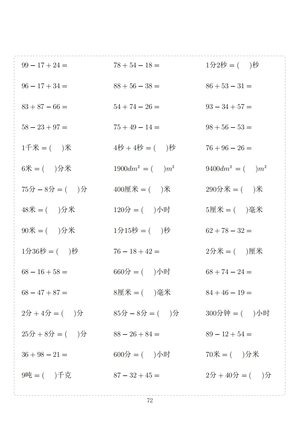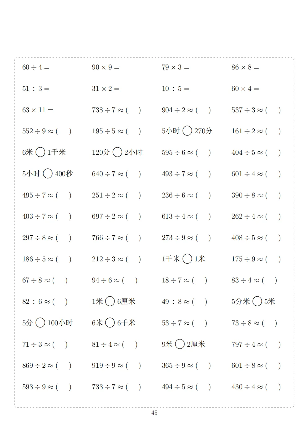 三年级下册数学计算专项练习|电子版可打印