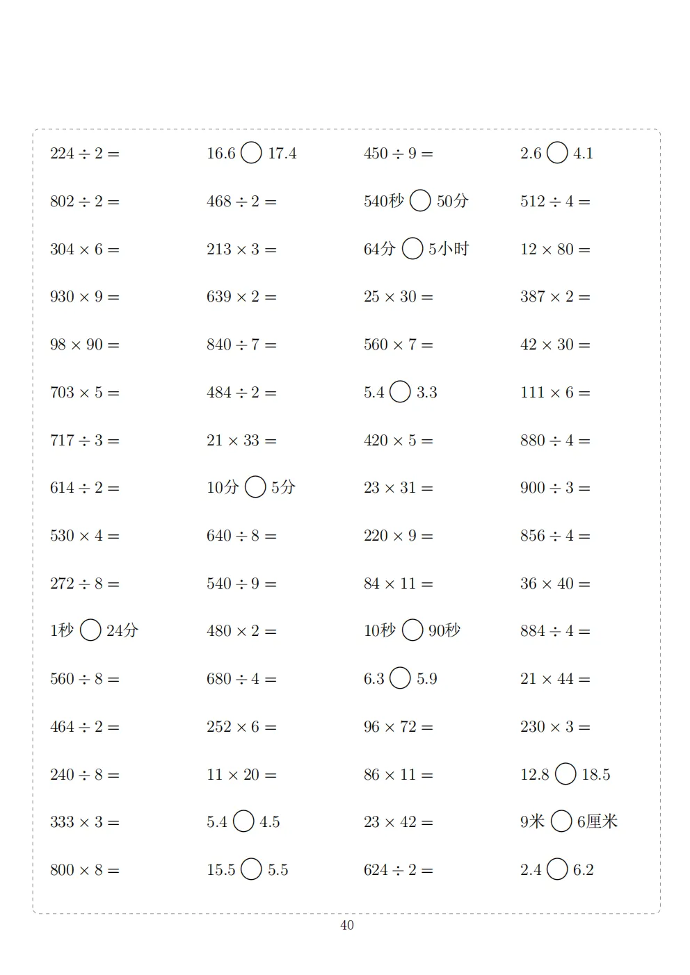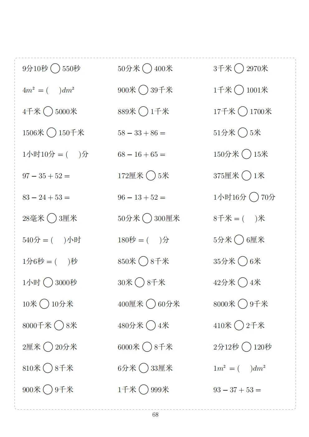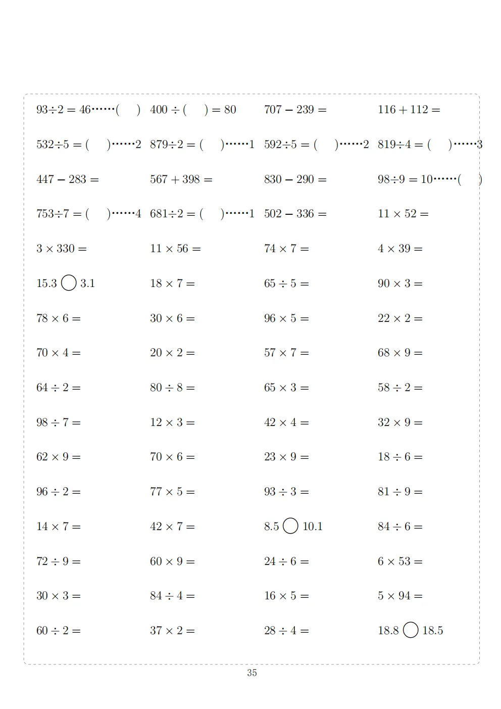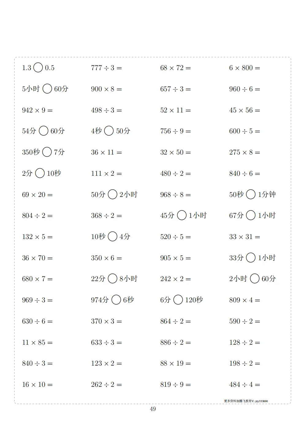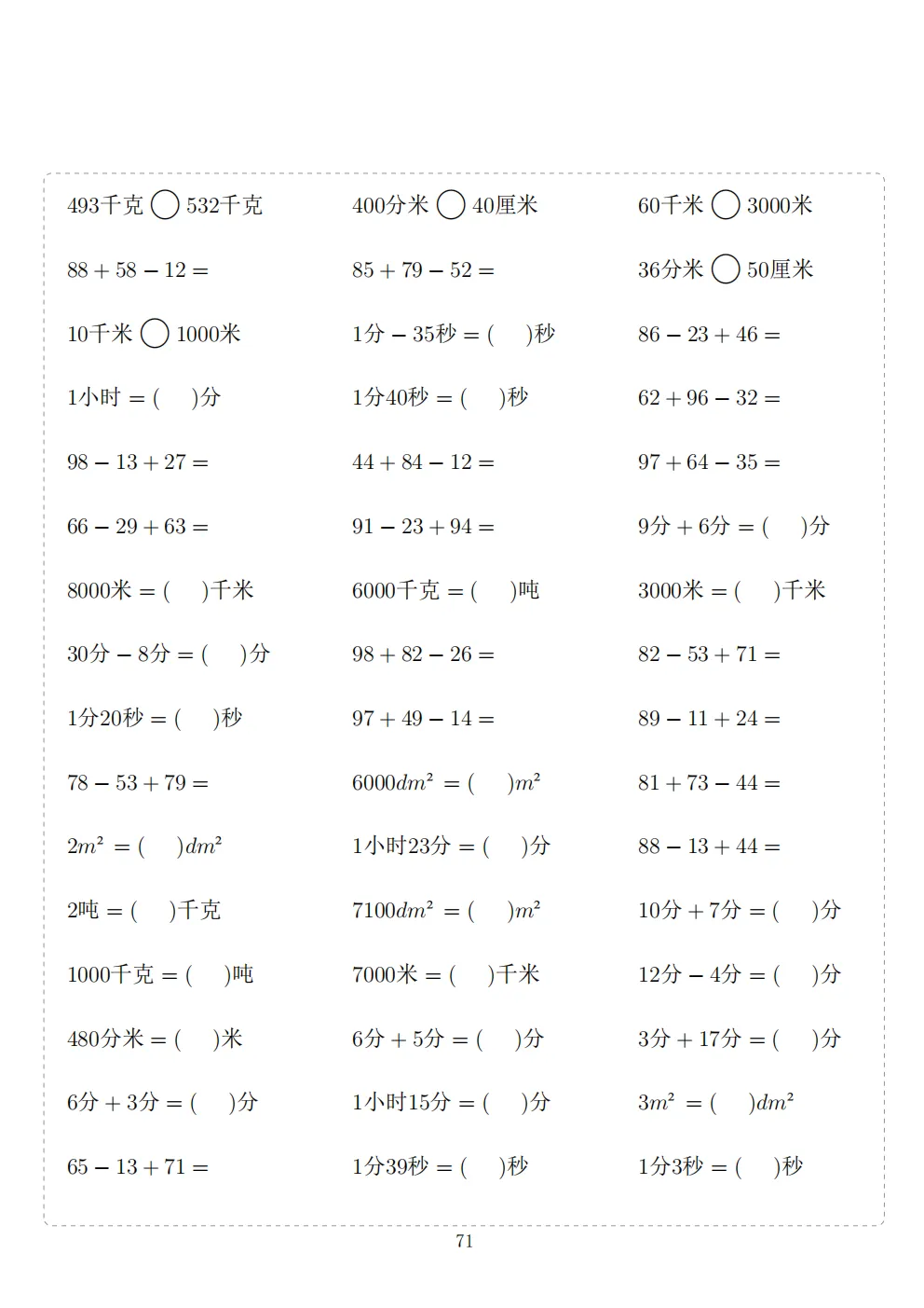 三年级下册数学计算专项练习|电子版可打印