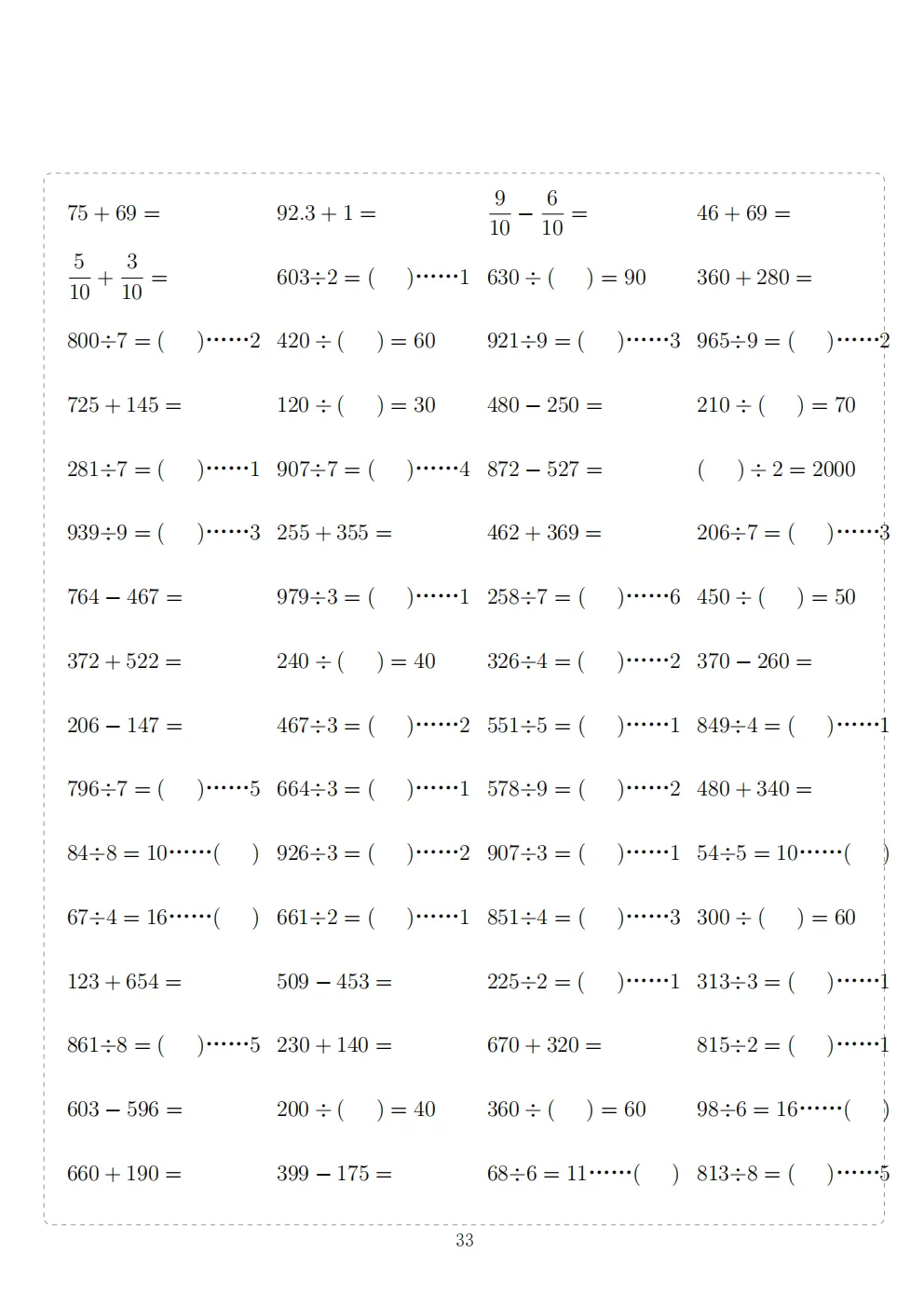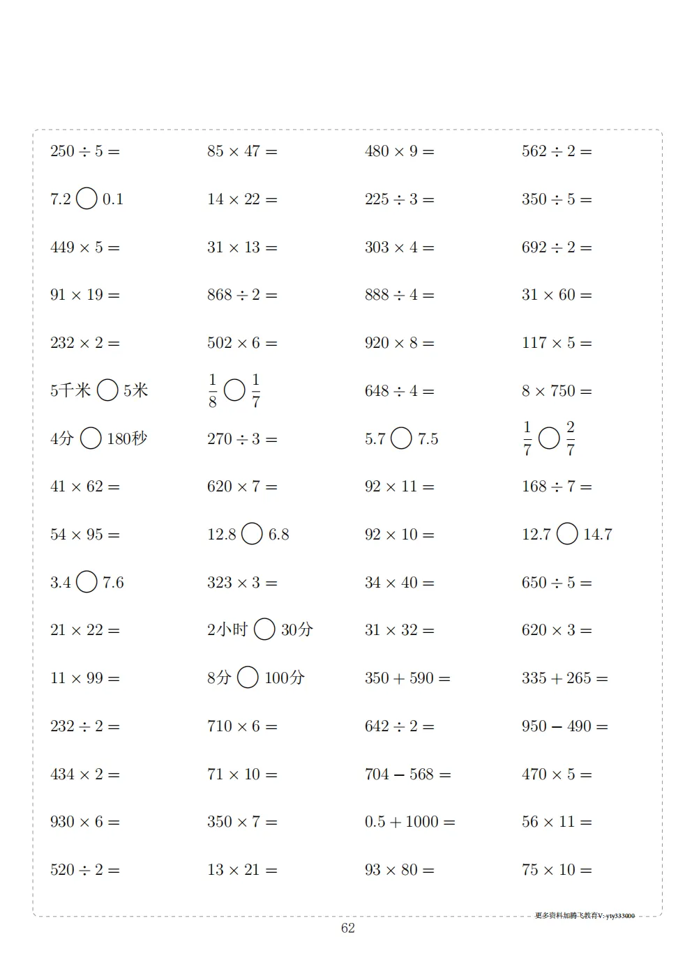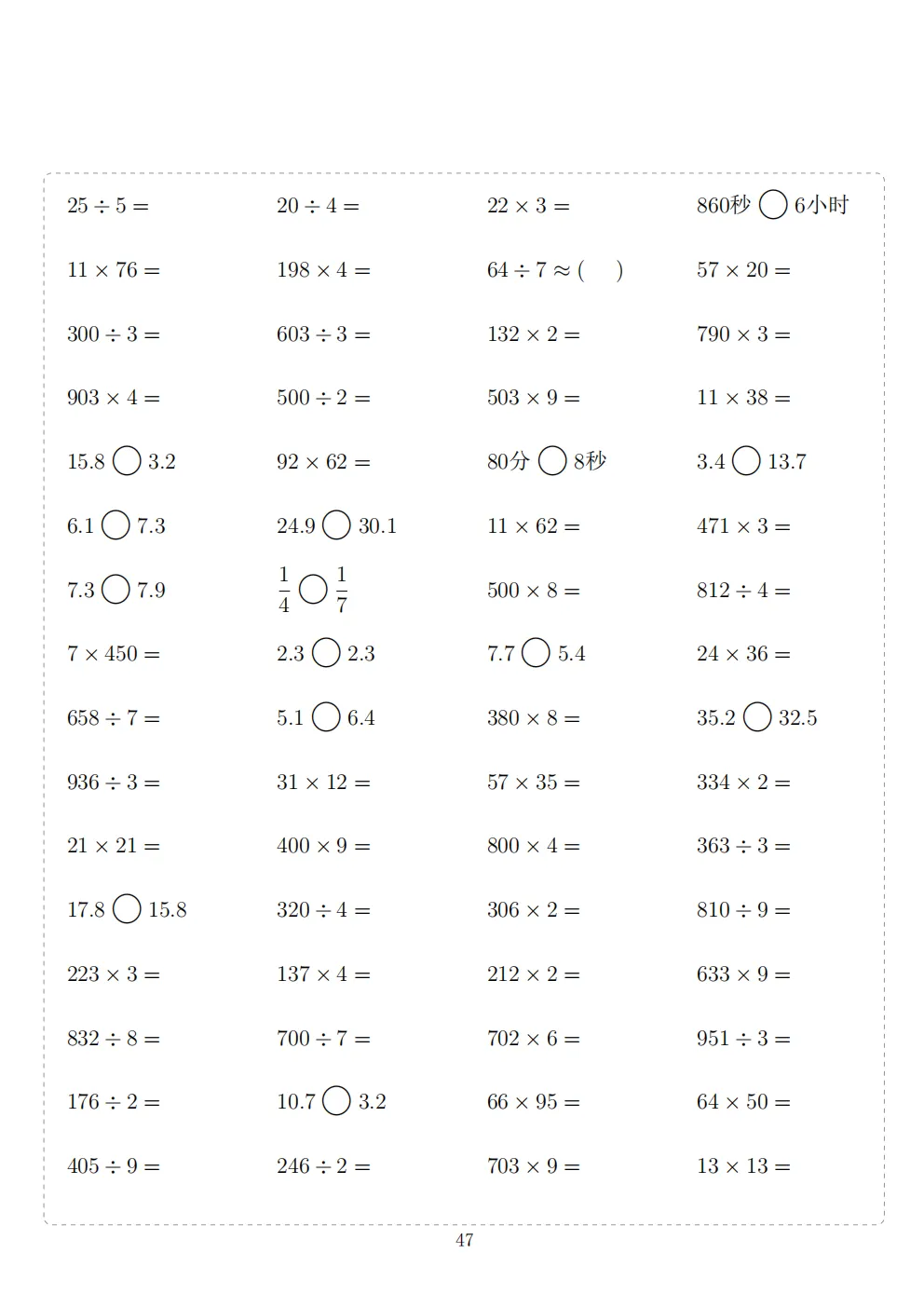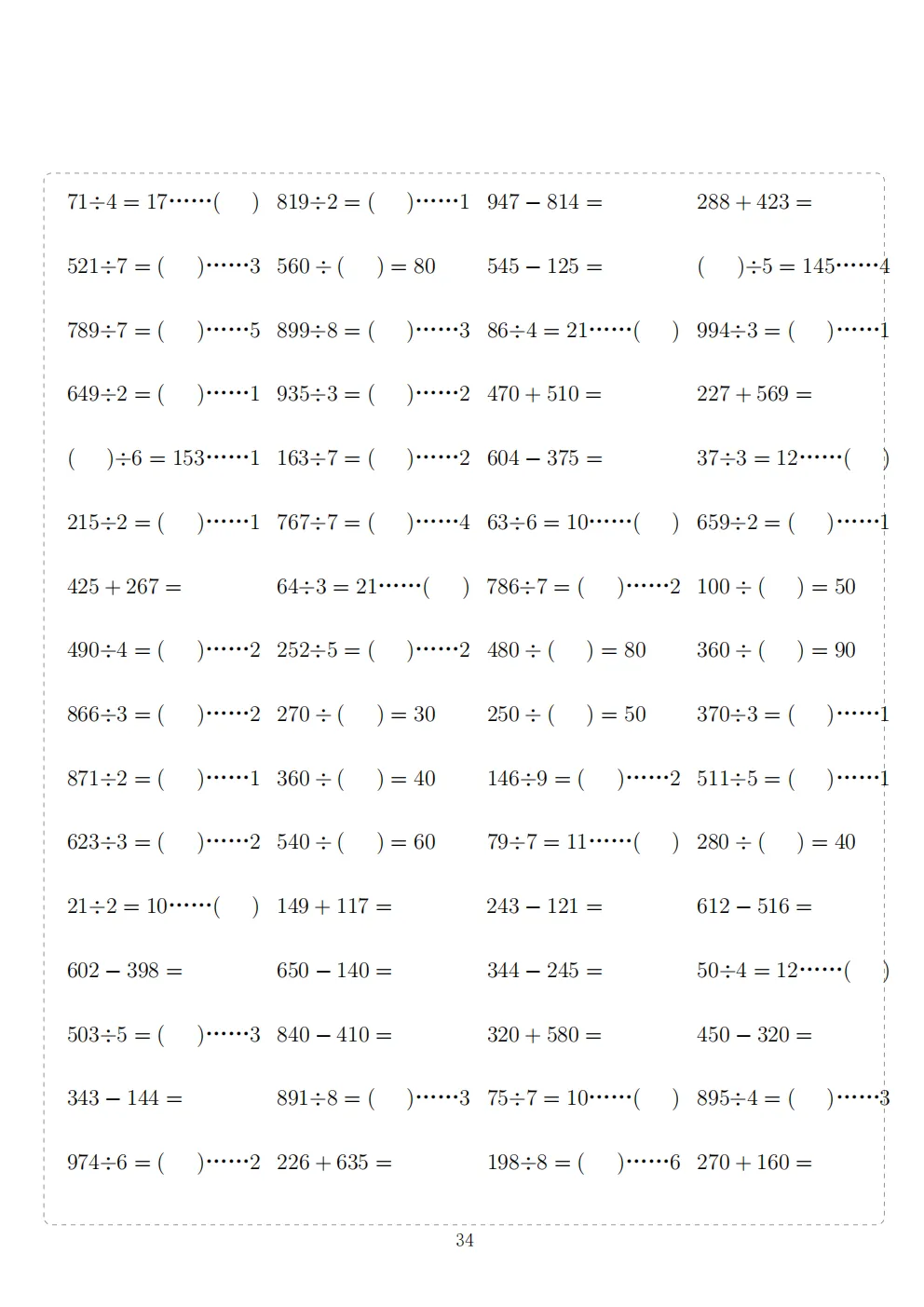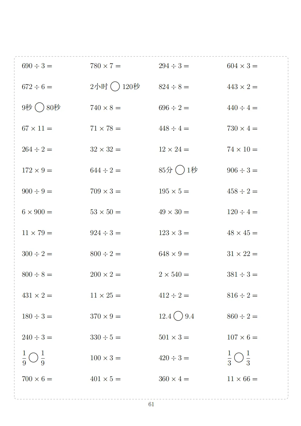三年级下册数学计算专项练习|电子版可打印