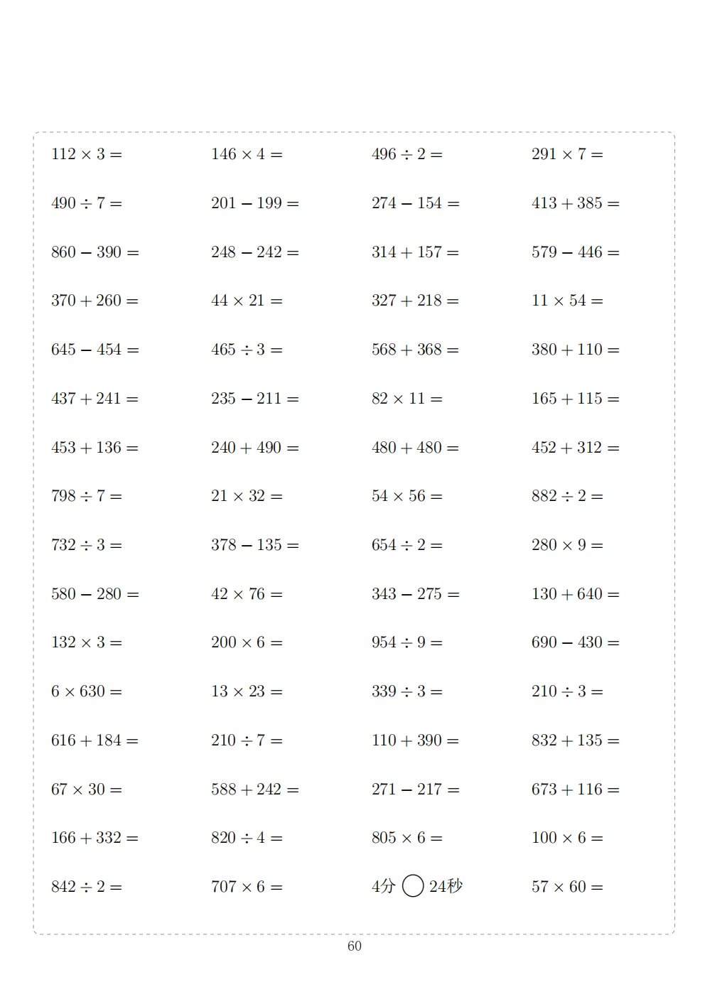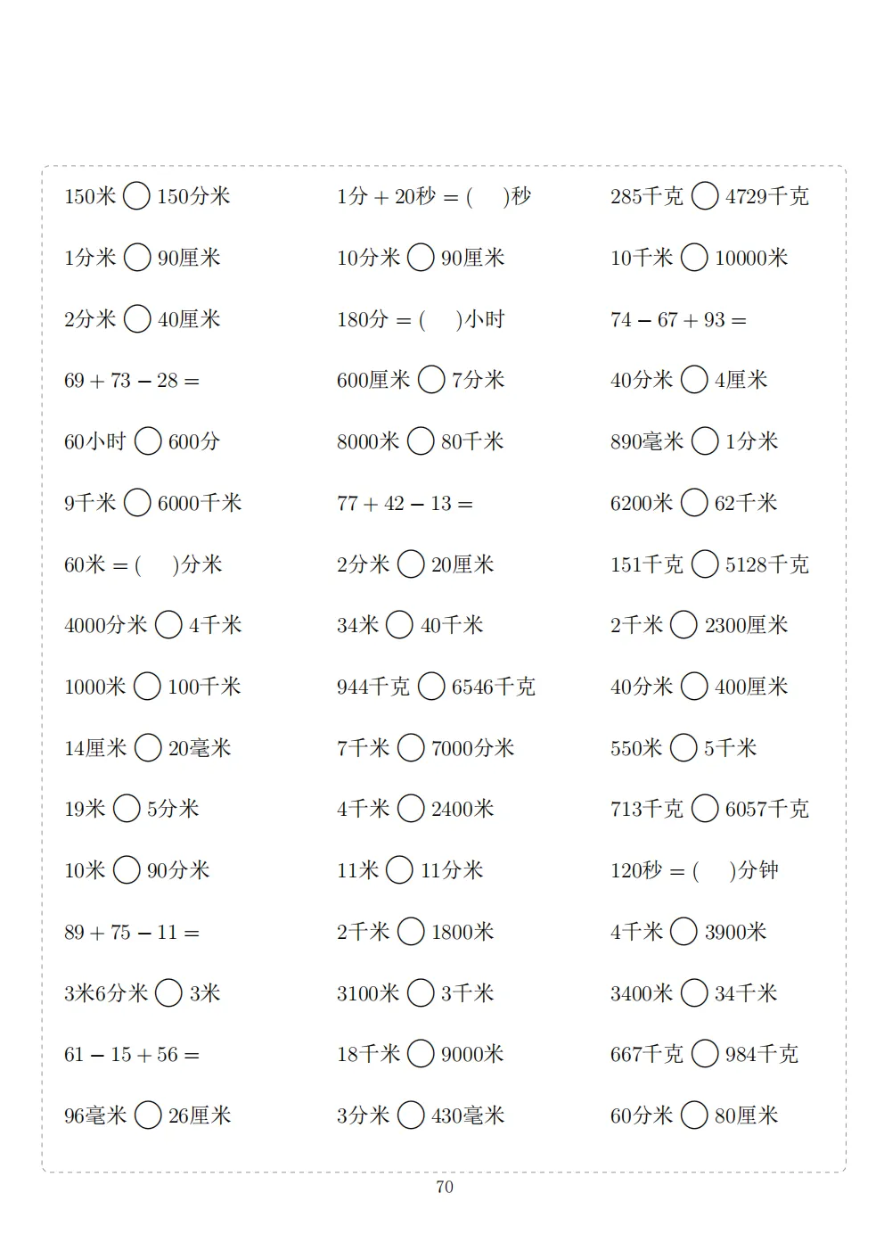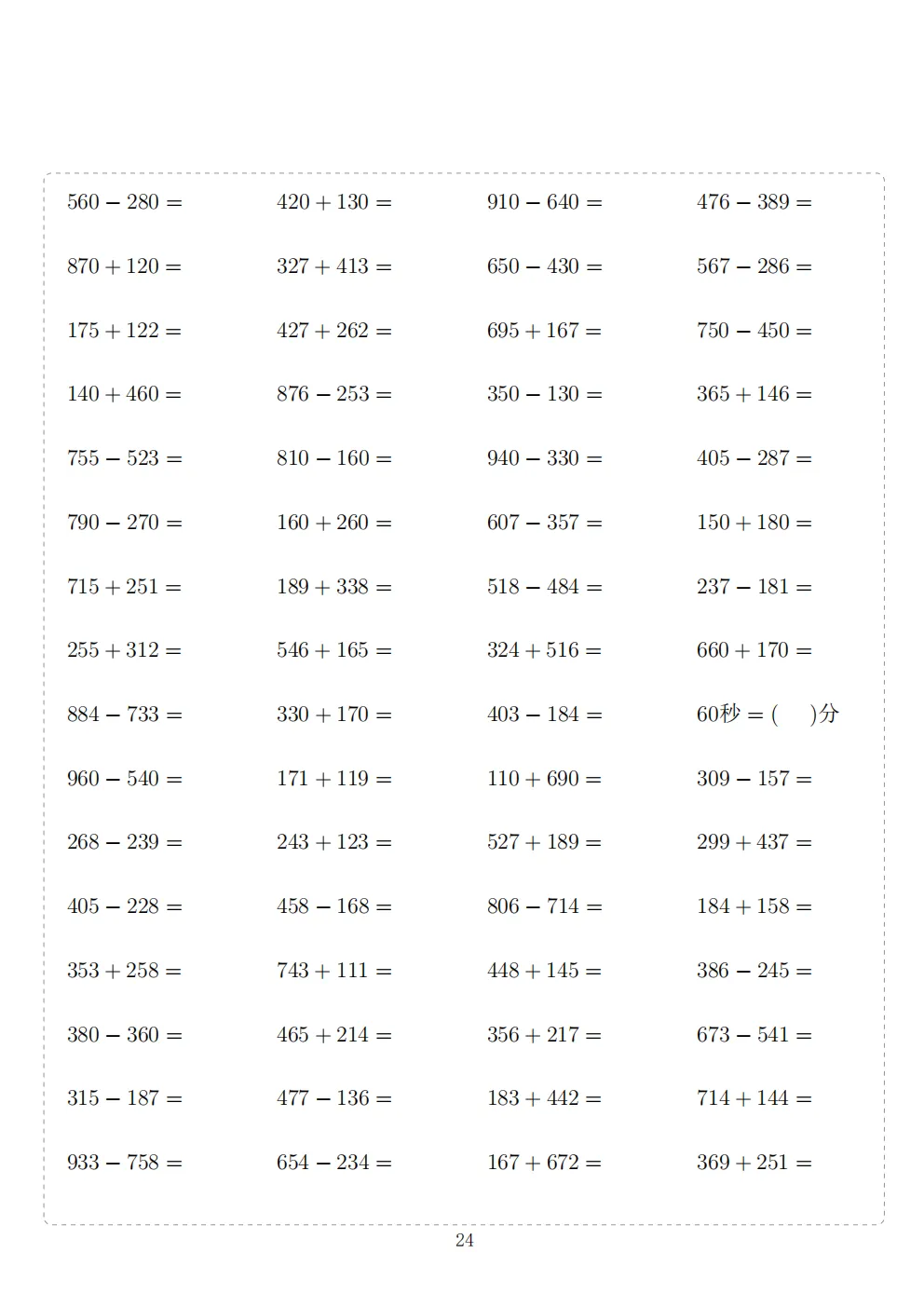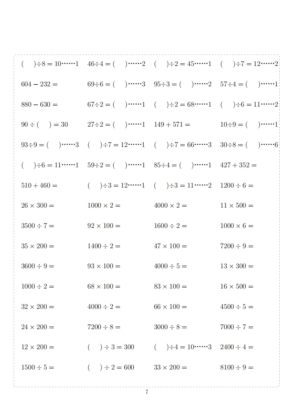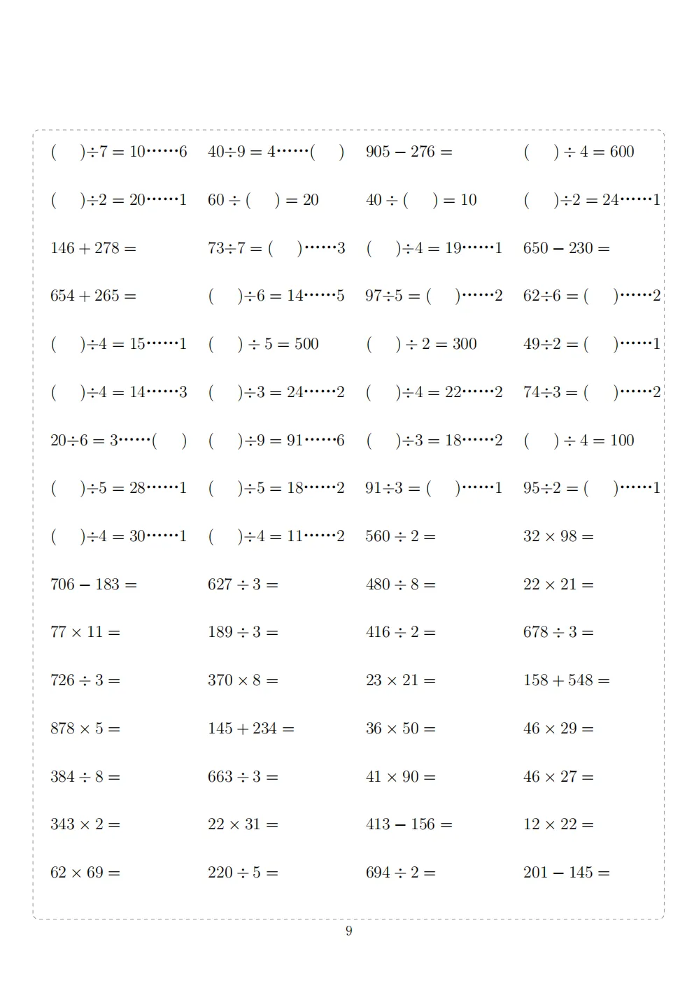 三年级下册数学计算专项练习|电子版可打印