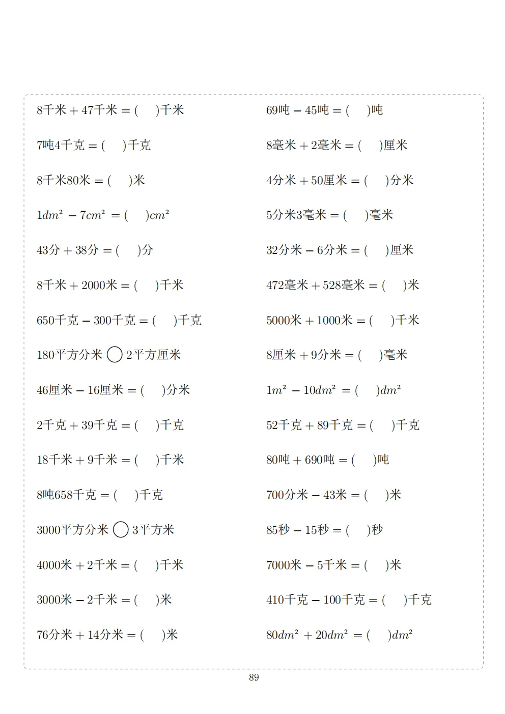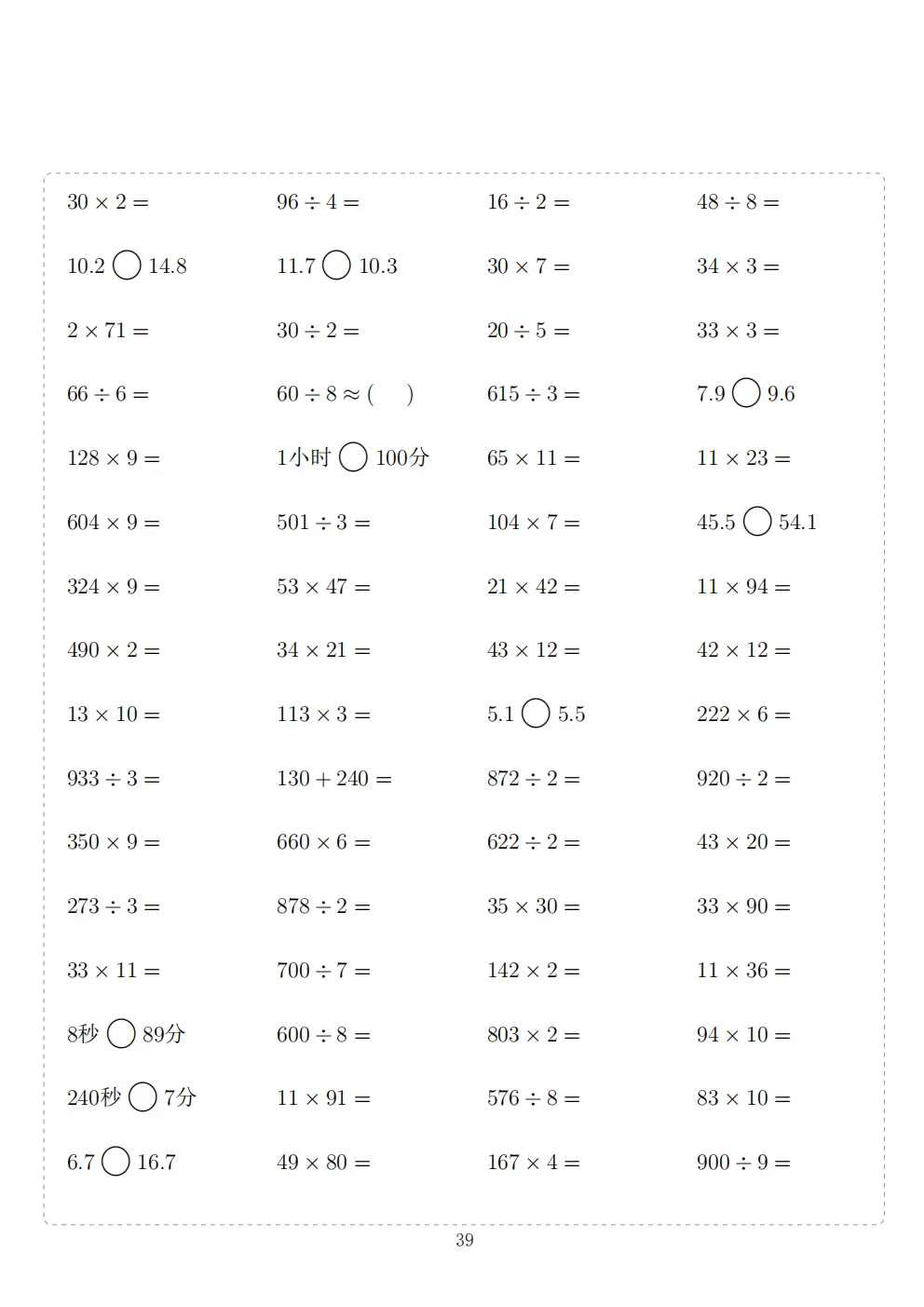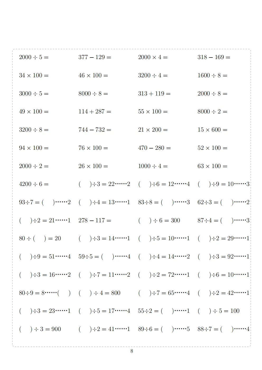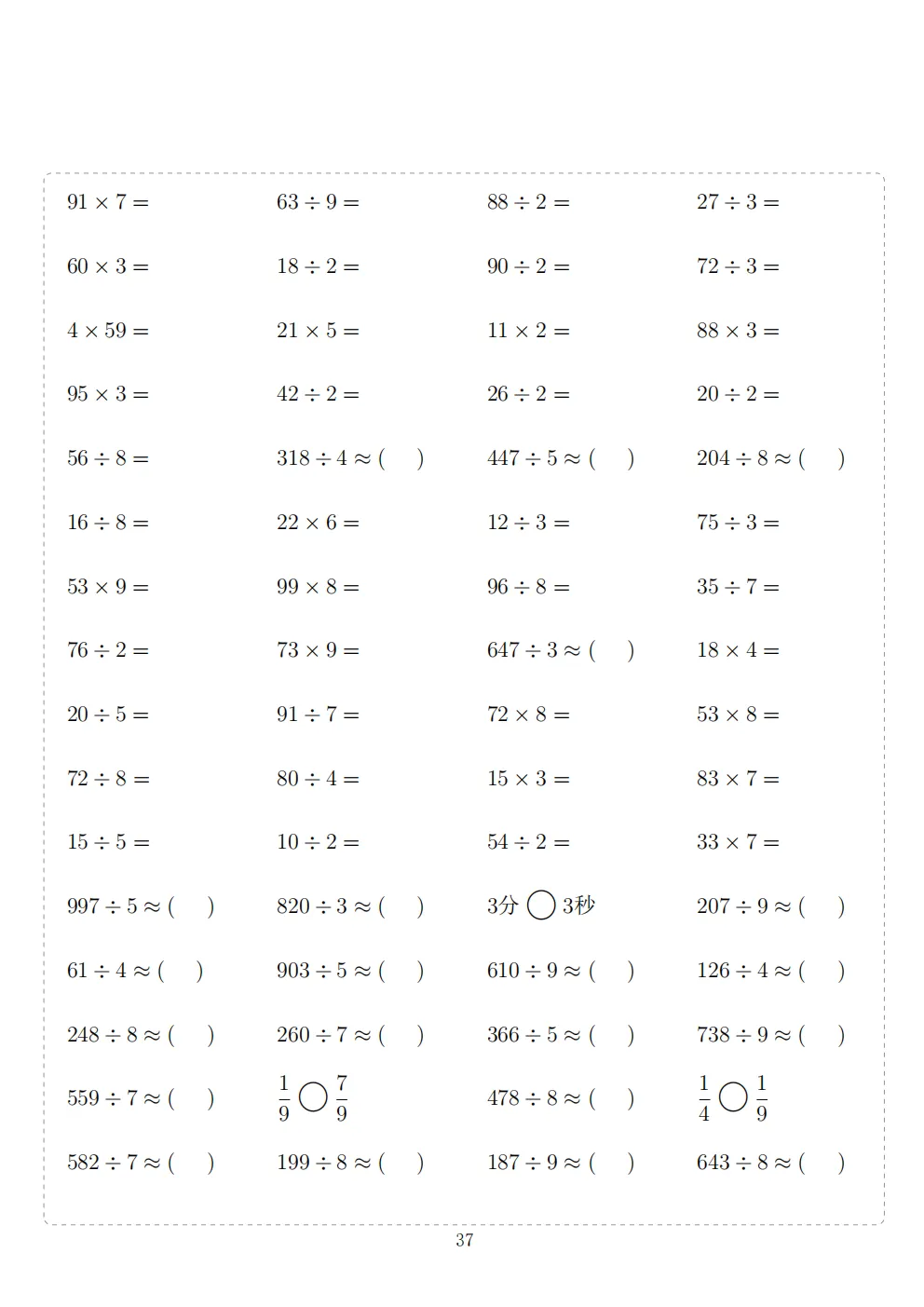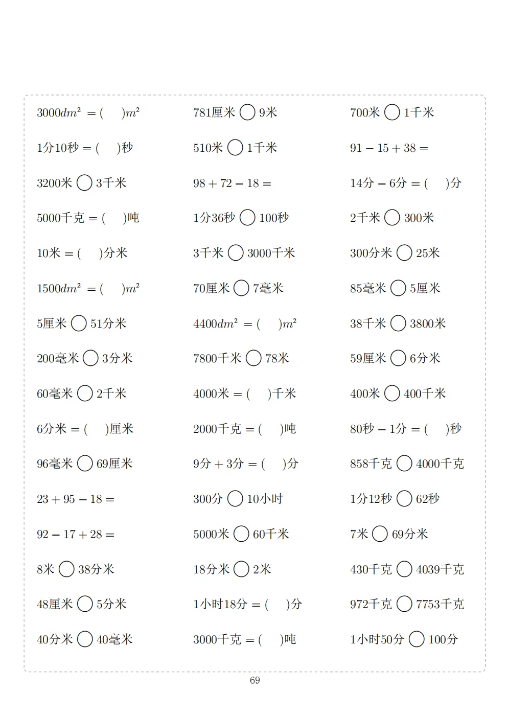 三年级下册数学计算专项练习|电子版可打印
