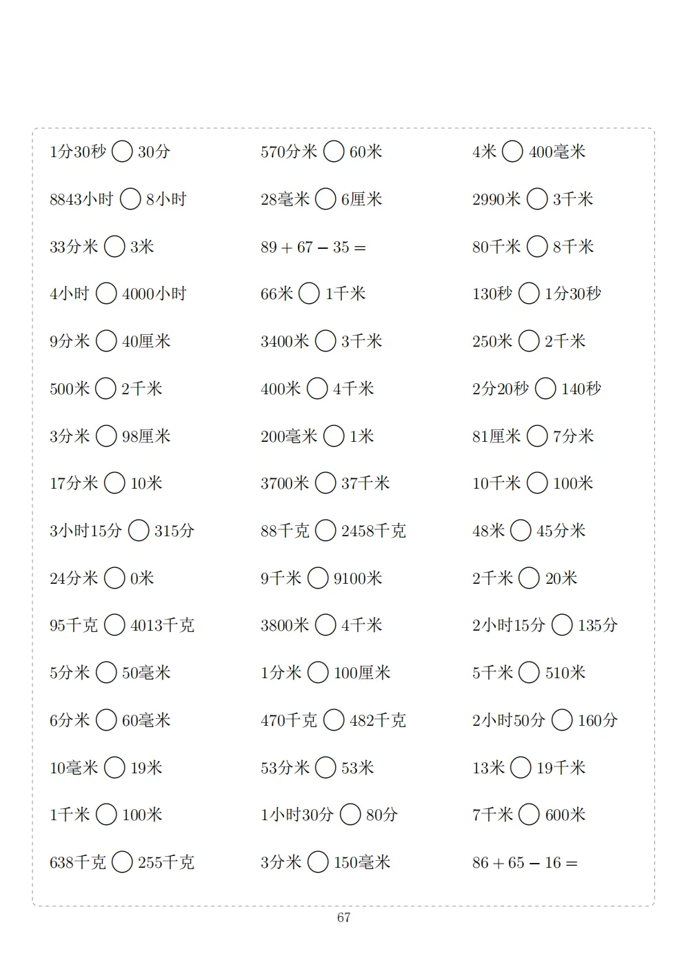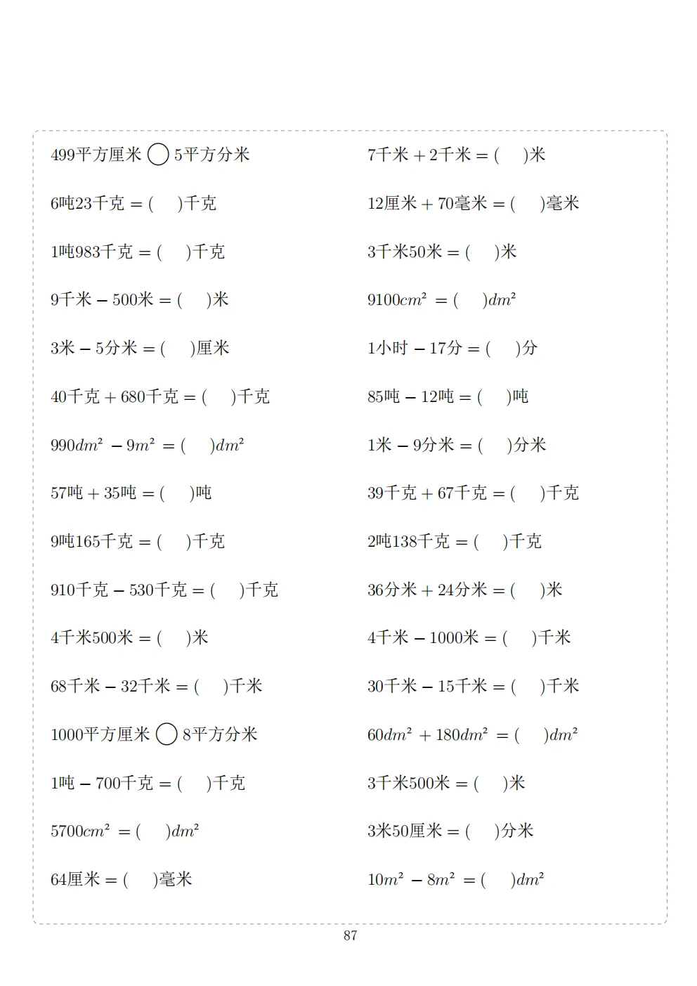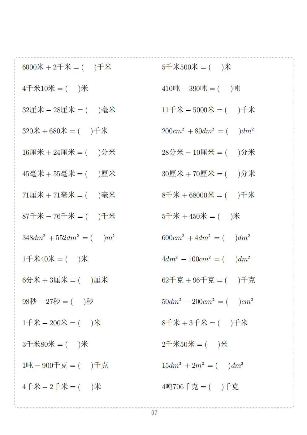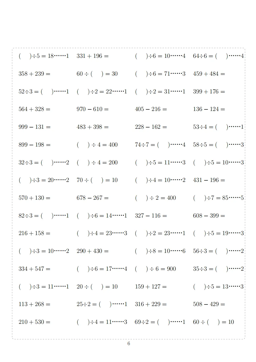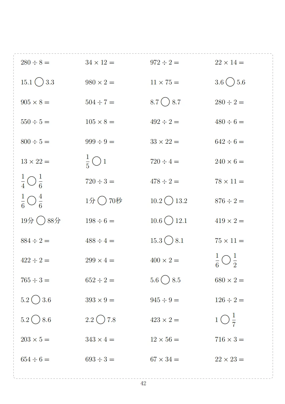 三年级下册数学计算专项练习|电子版可打印