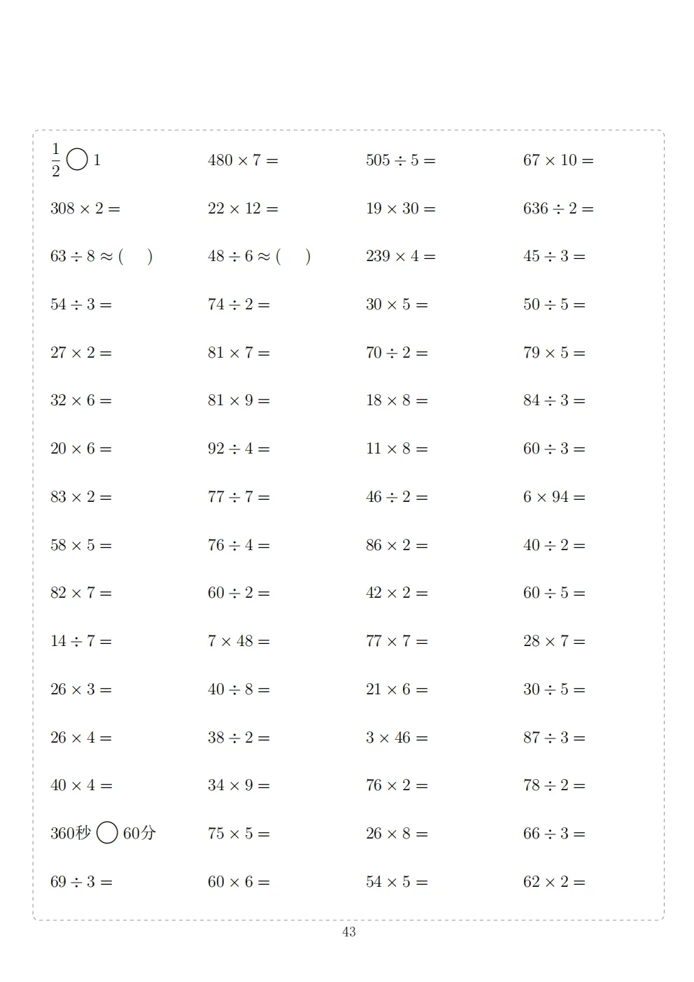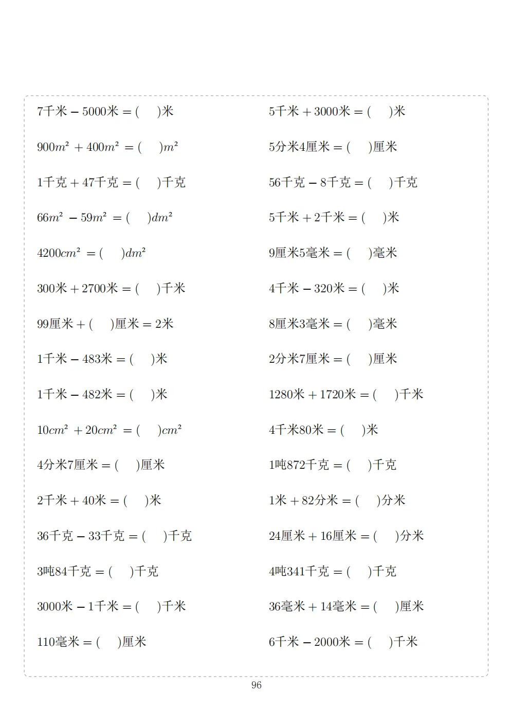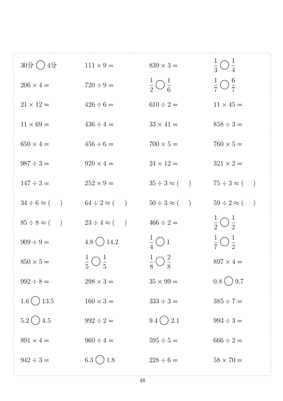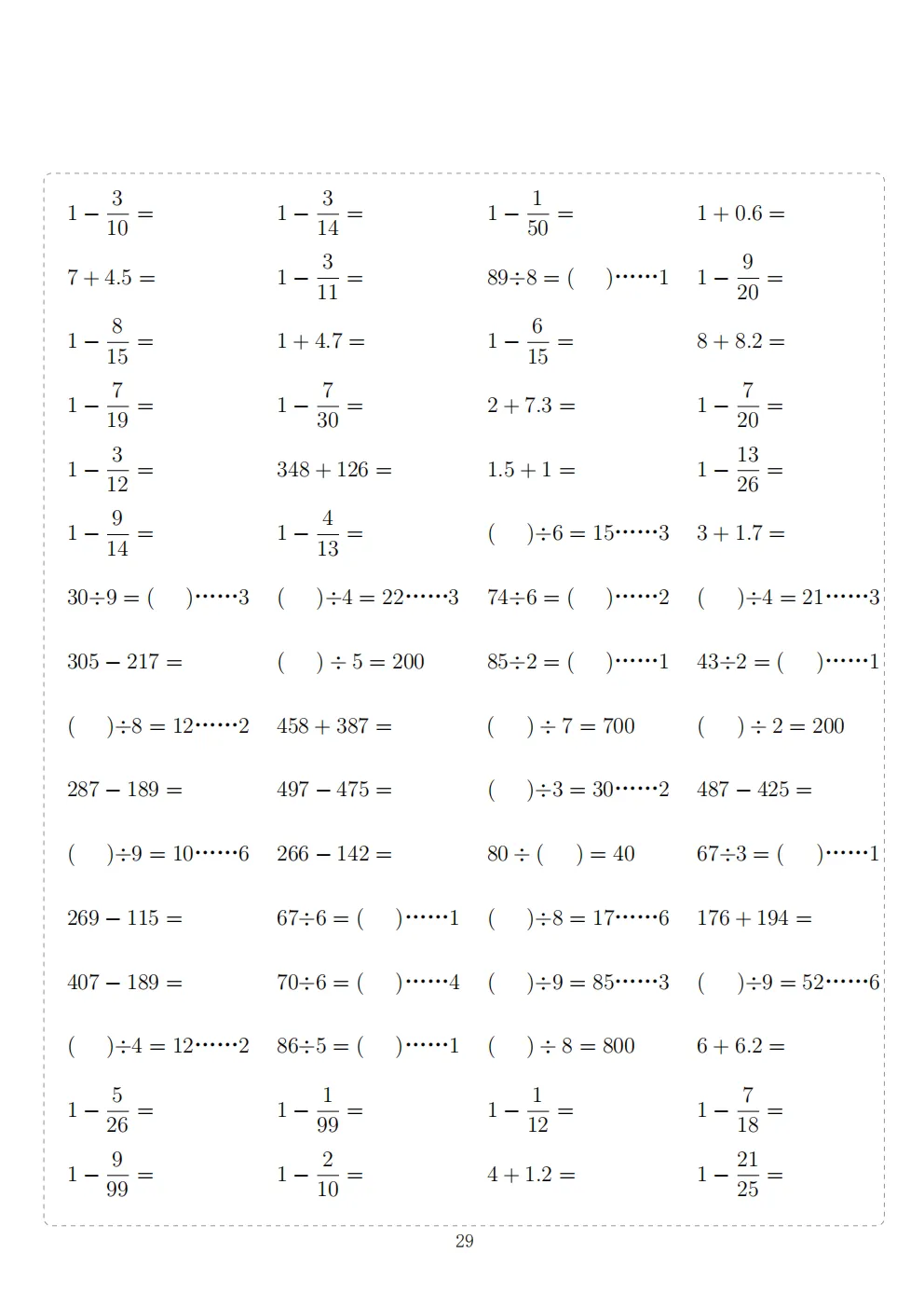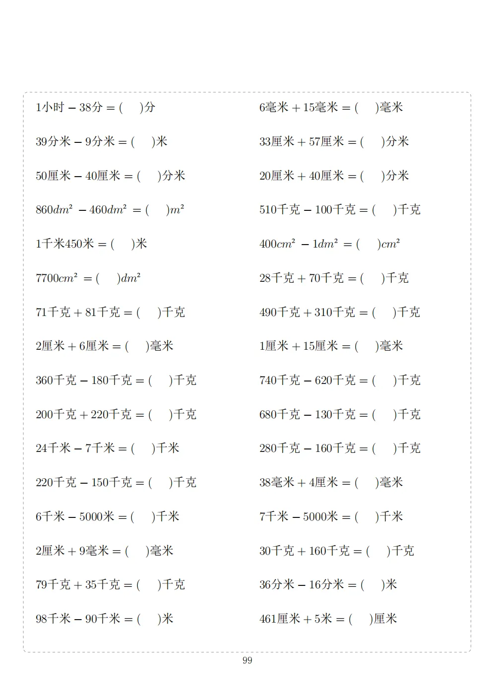 三年级下册数学计算专项练习|电子版可打印