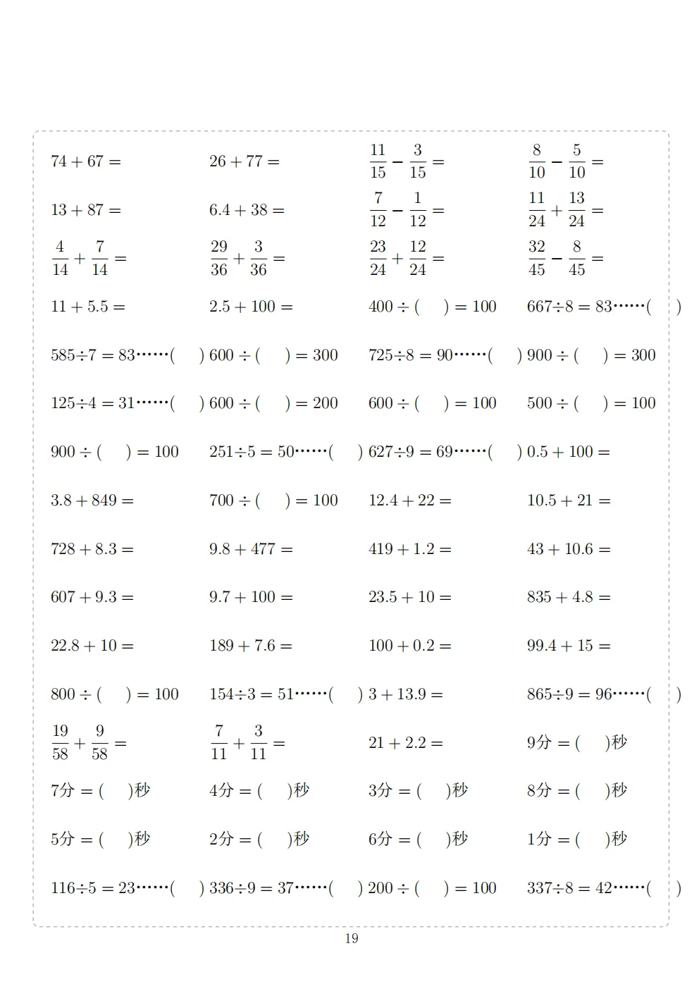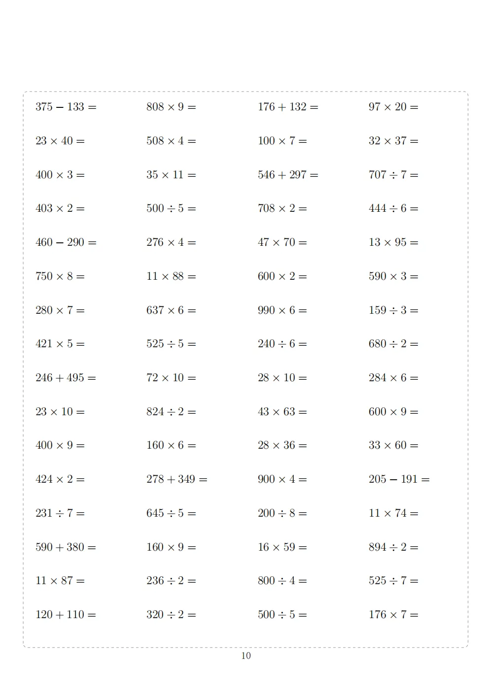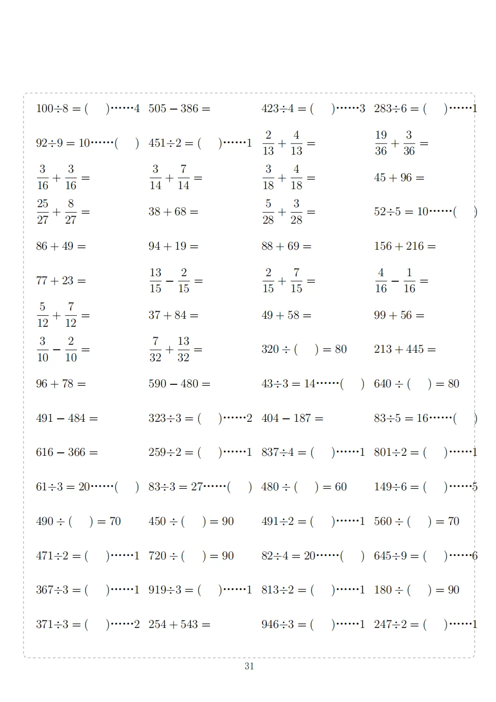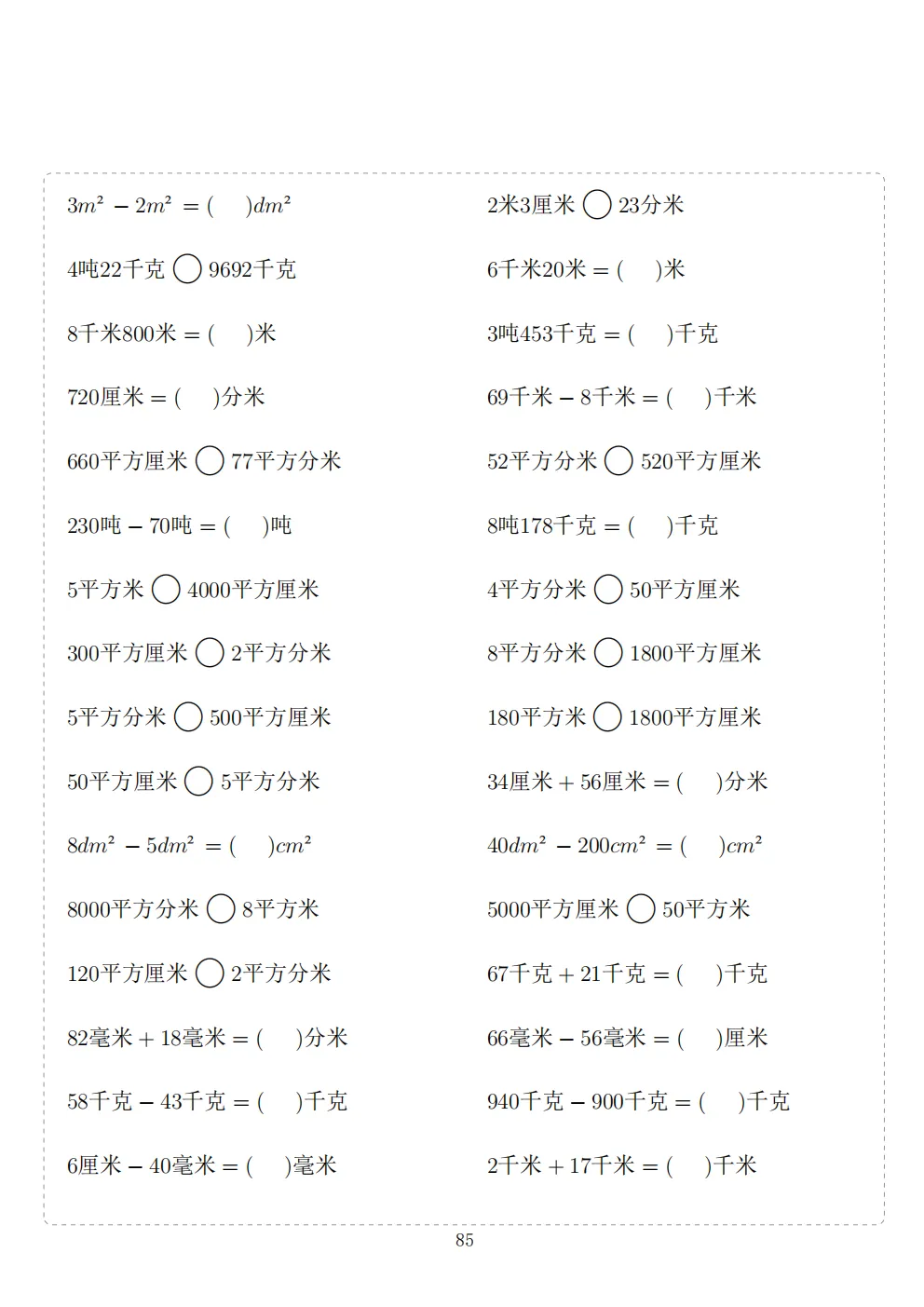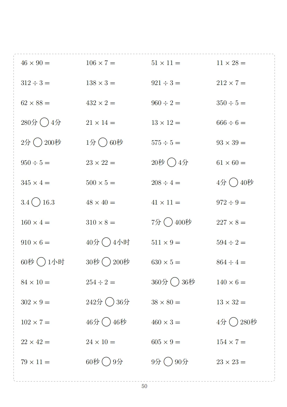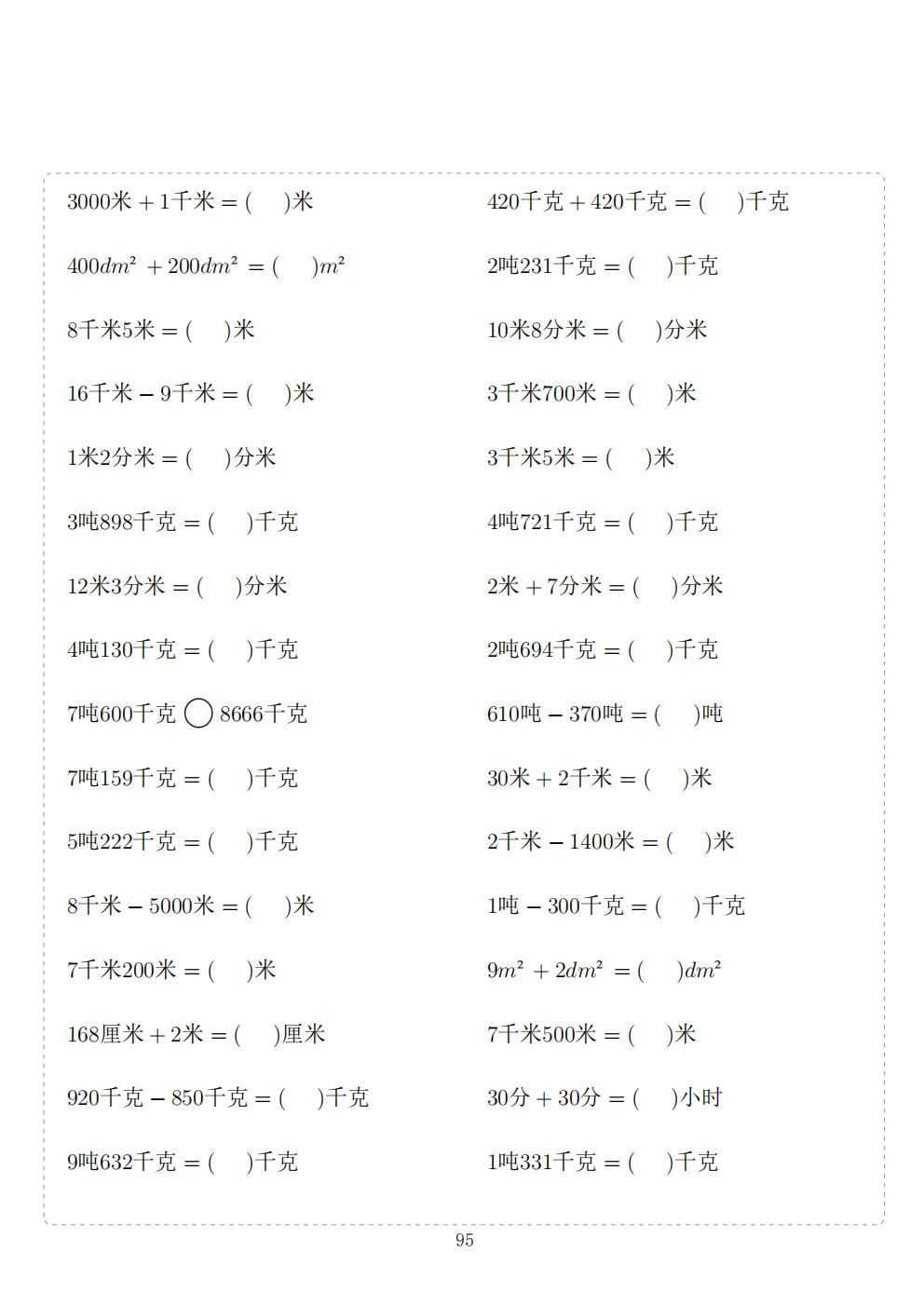三年级下册数学计算专项练习|电子版可打印