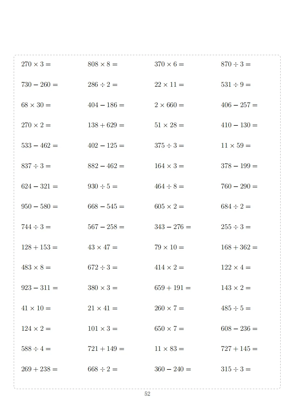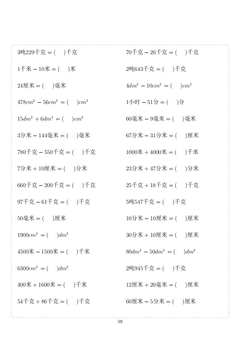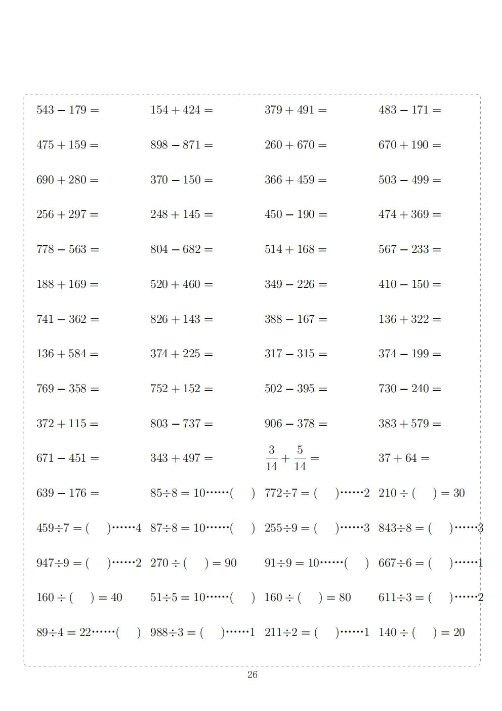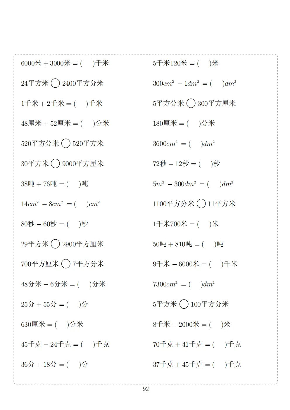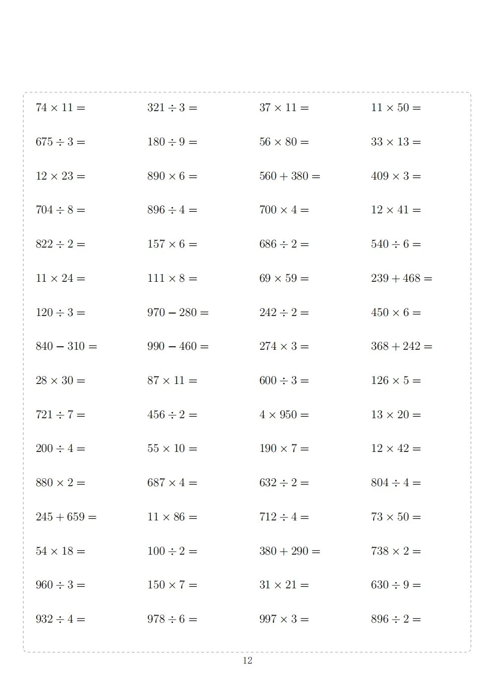 三年级下册数学计算专项练习|电子版可打印
