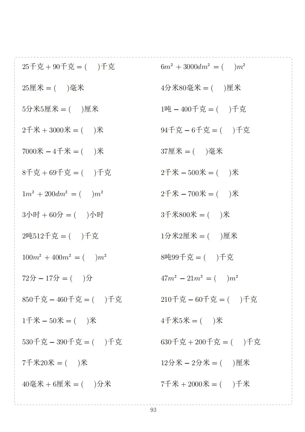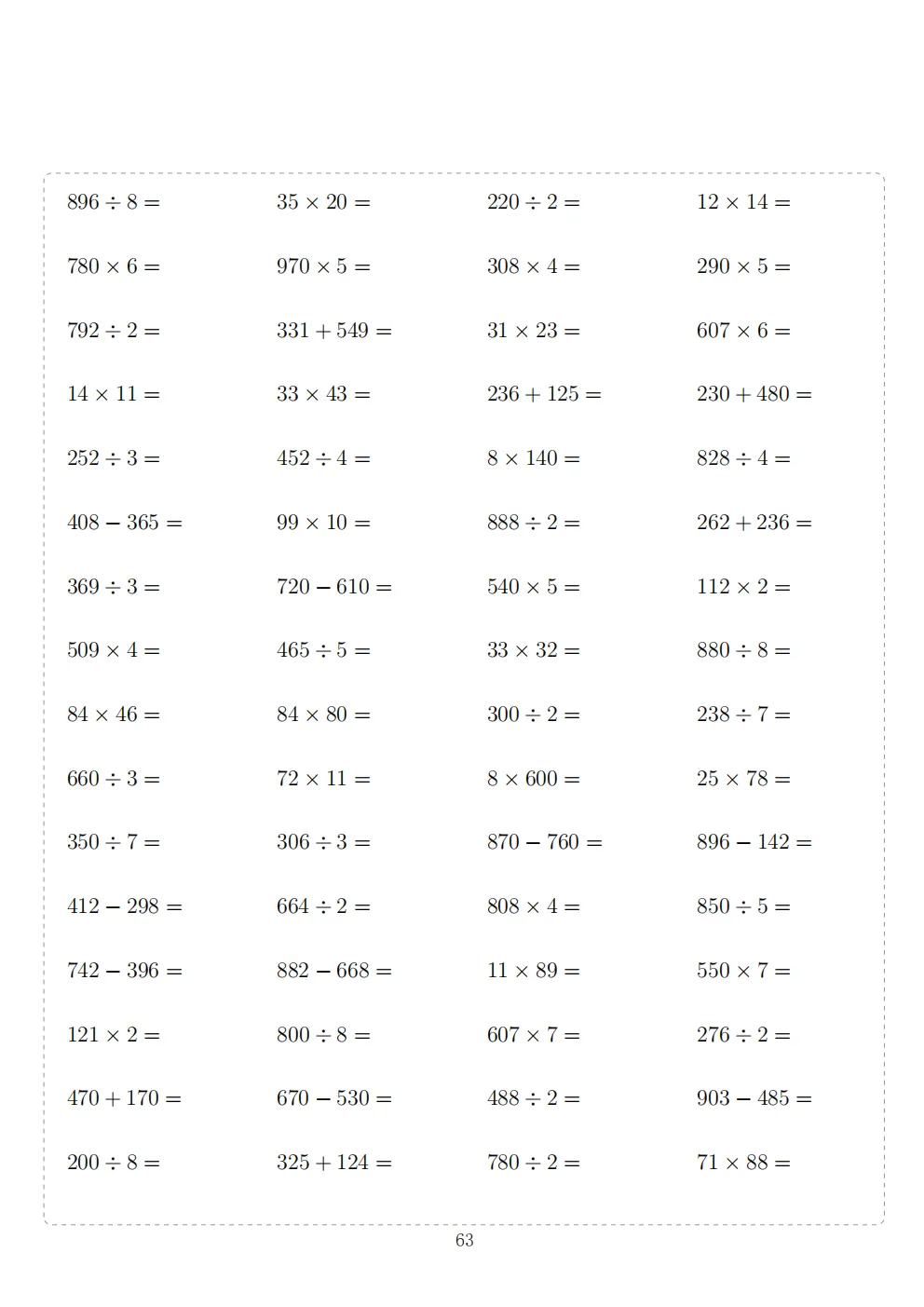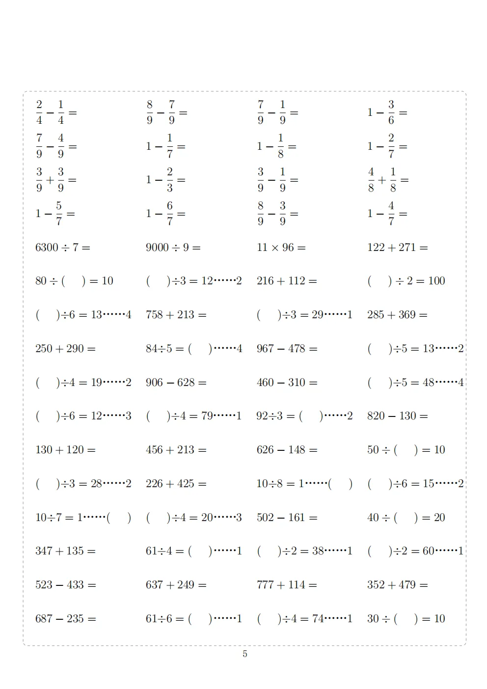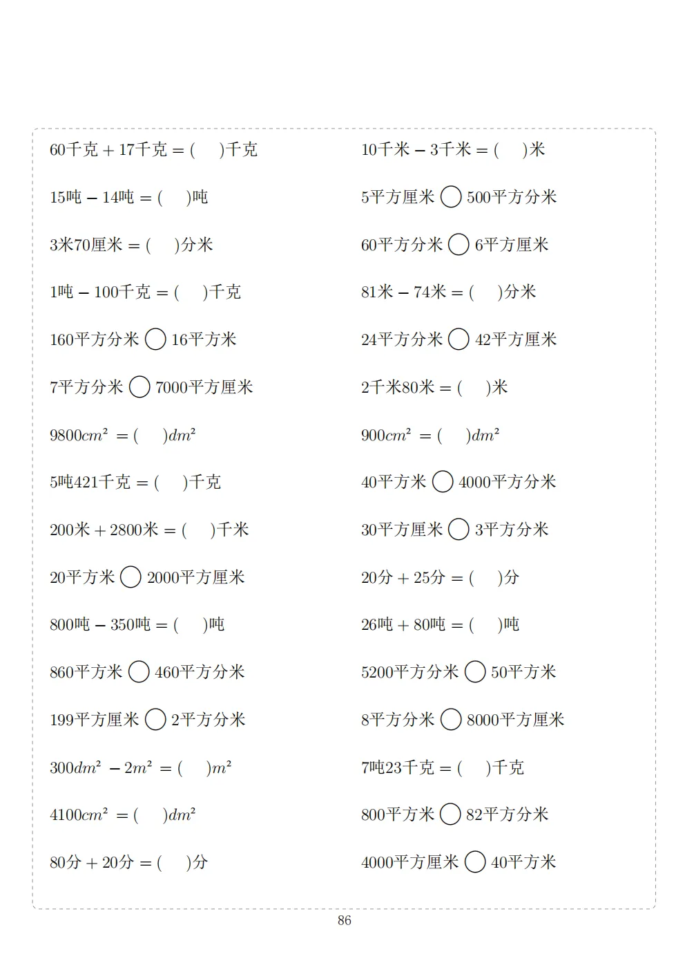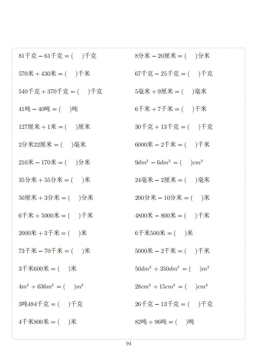 三年级下册数学计算专项练习|电子版可打印