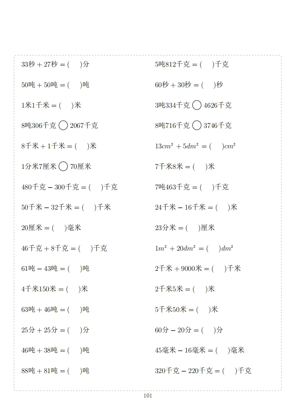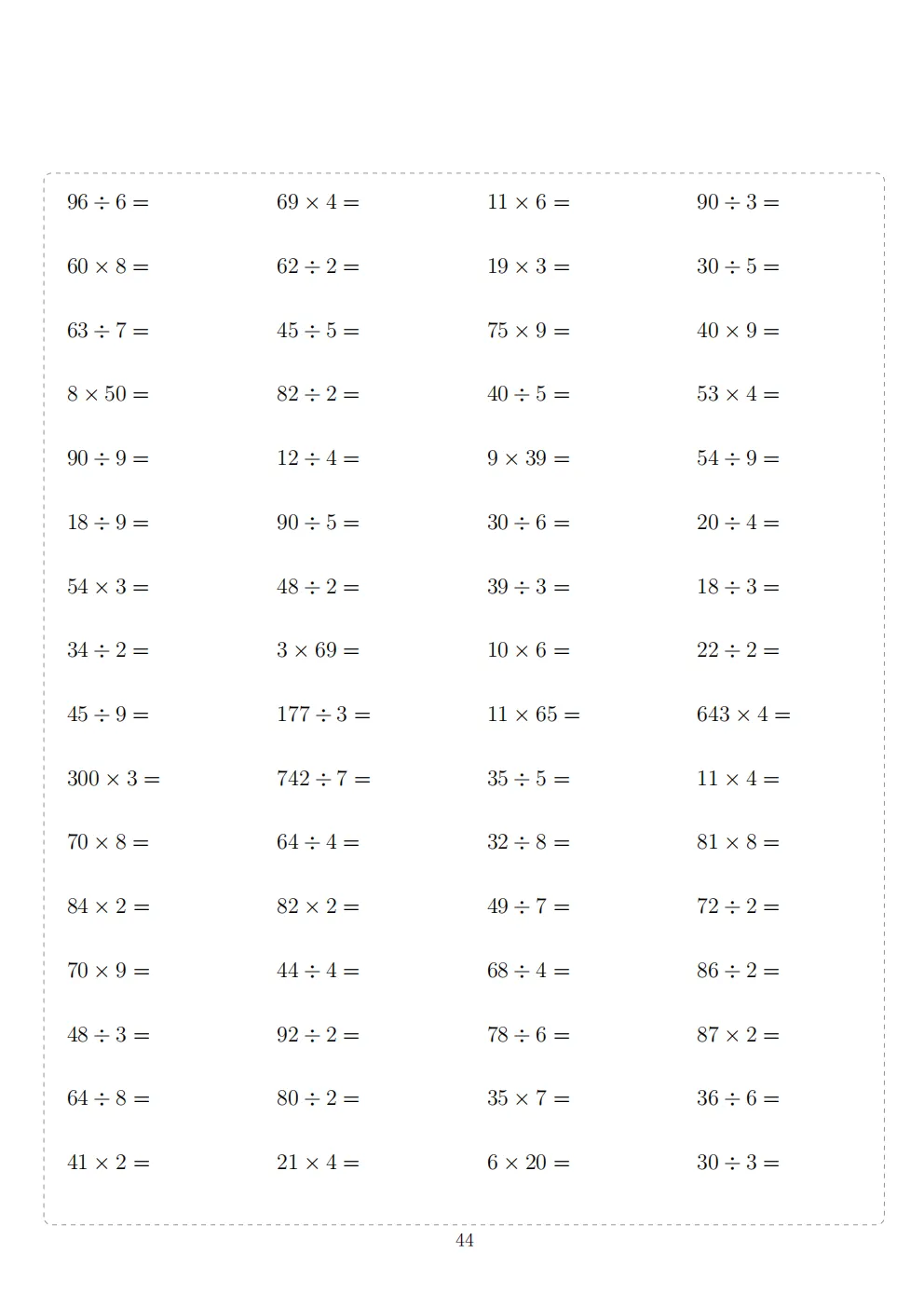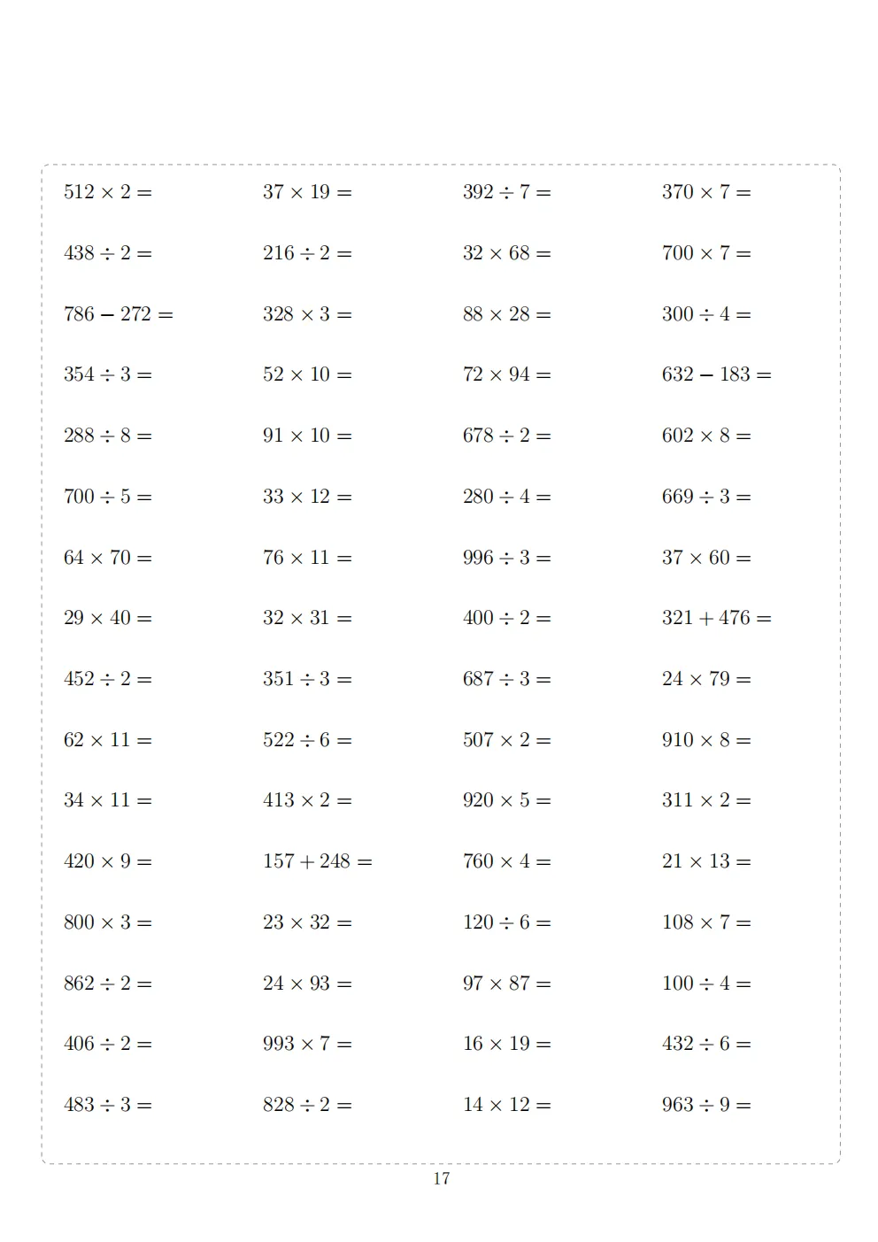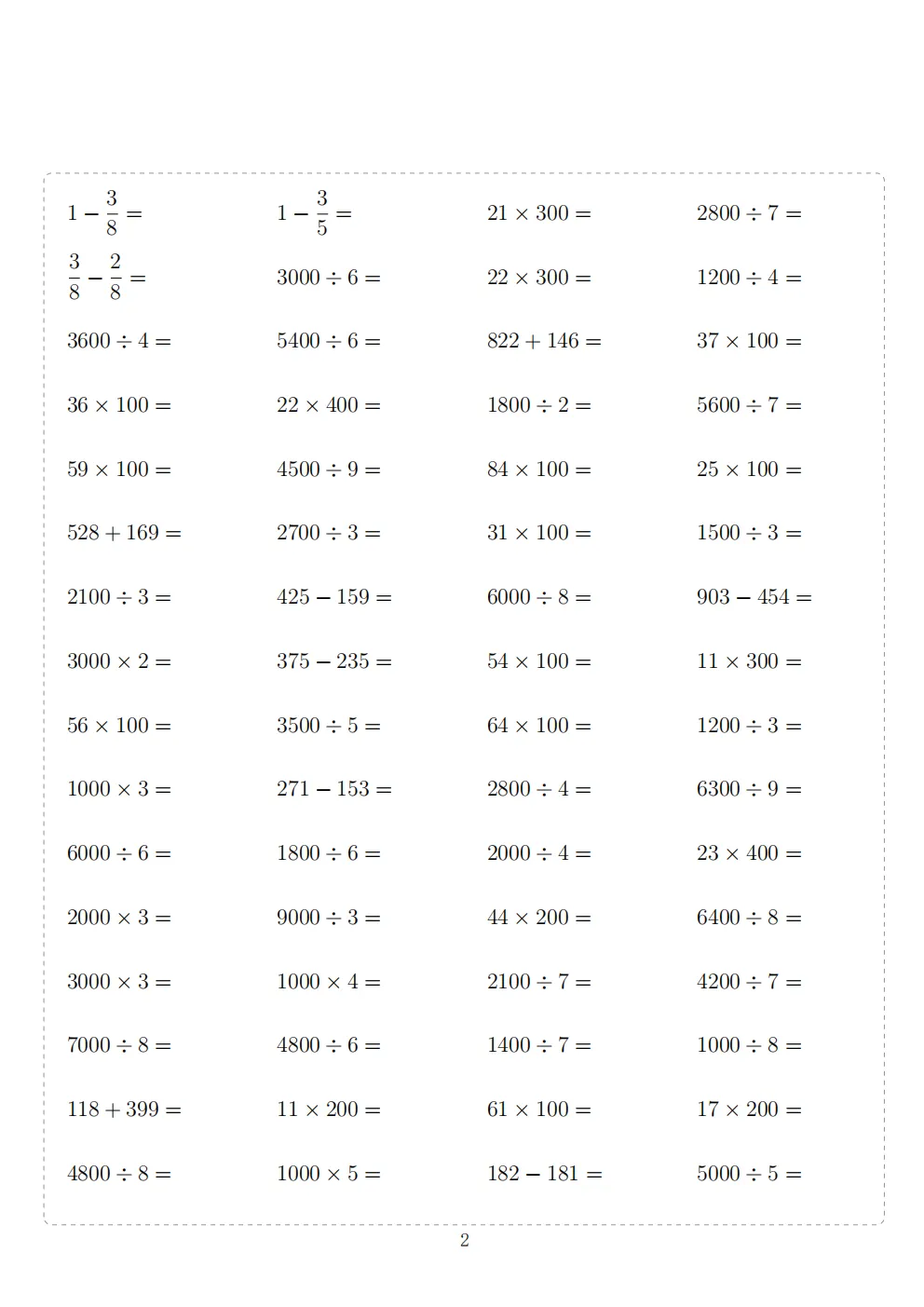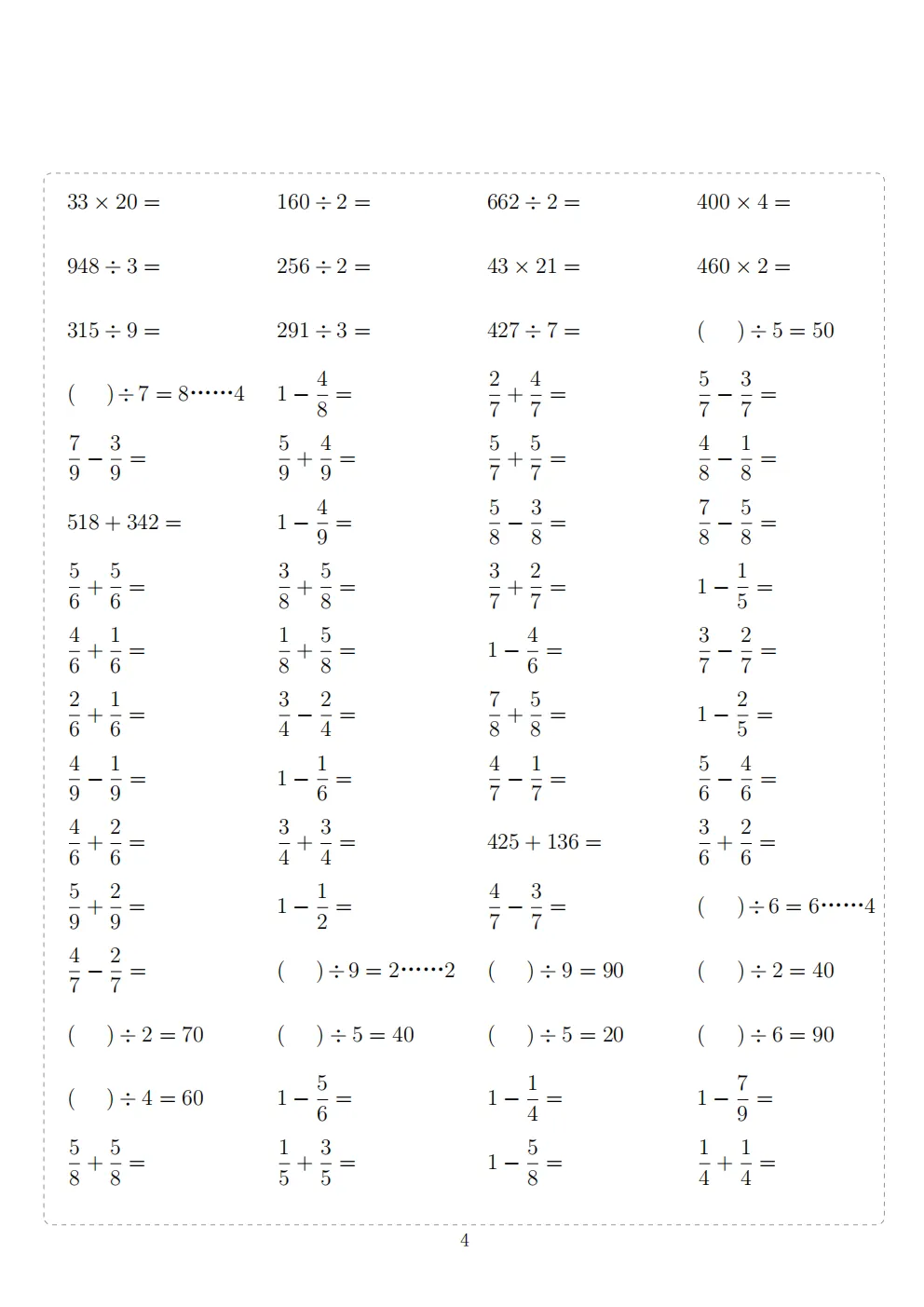 三年级下册数学计算专项练习|电子版可打印