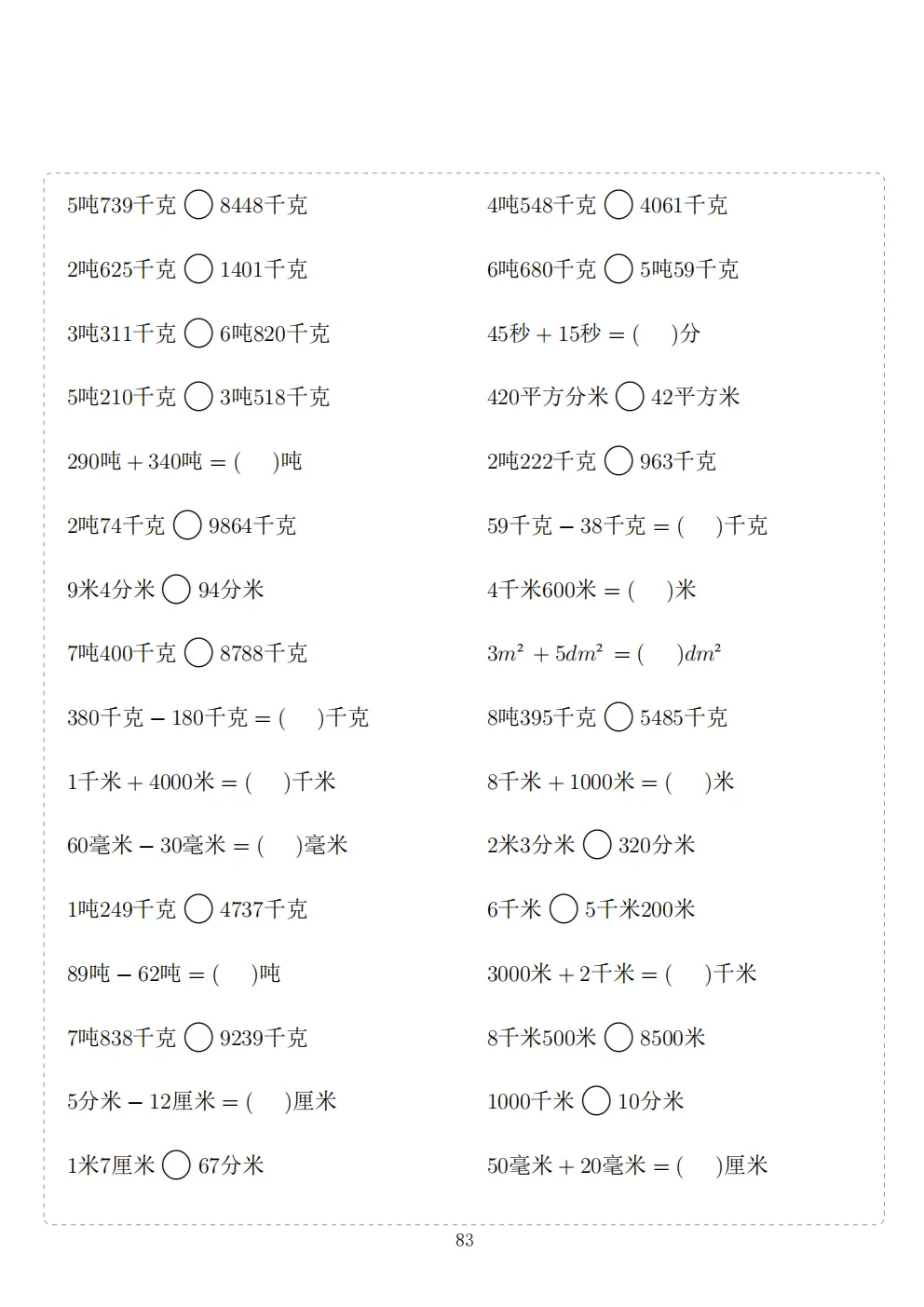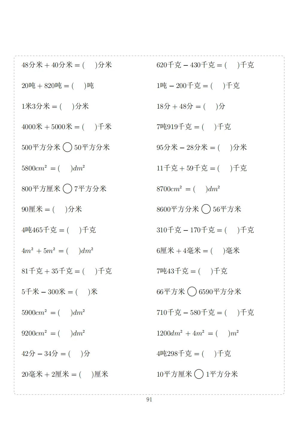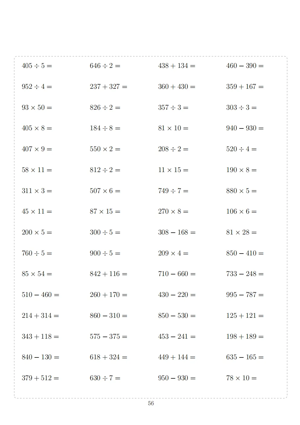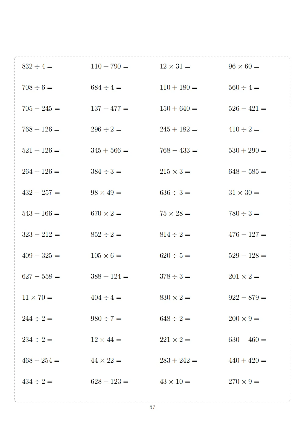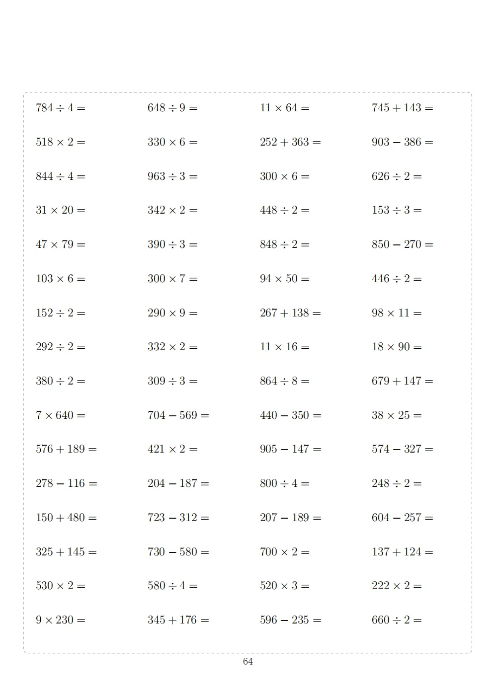 三年级下册数学计算专项练习|电子版可打印