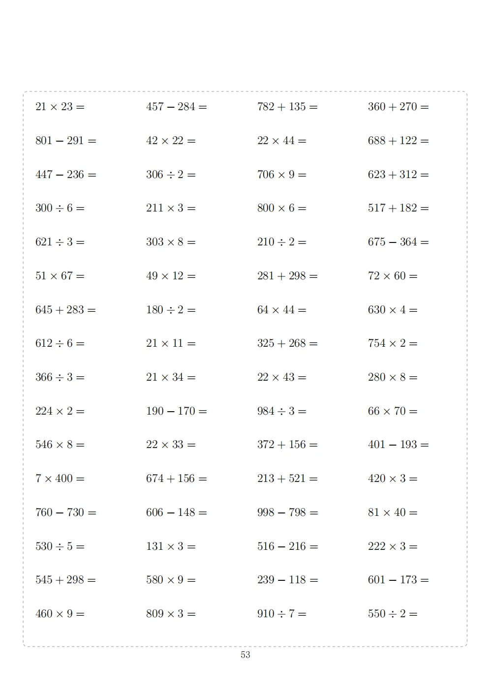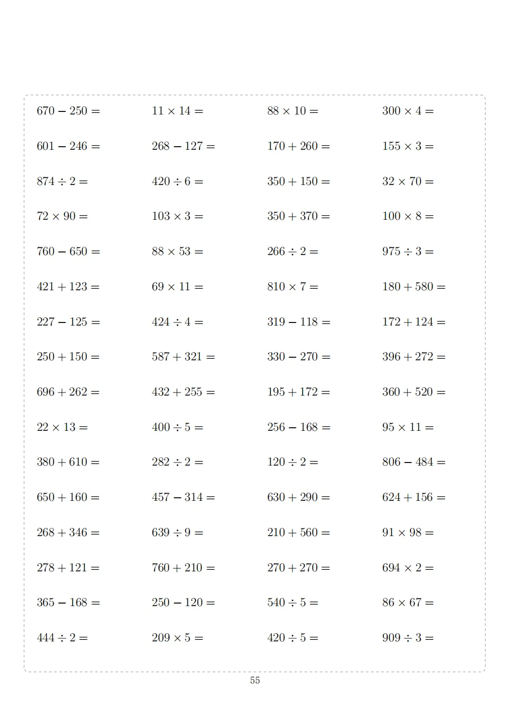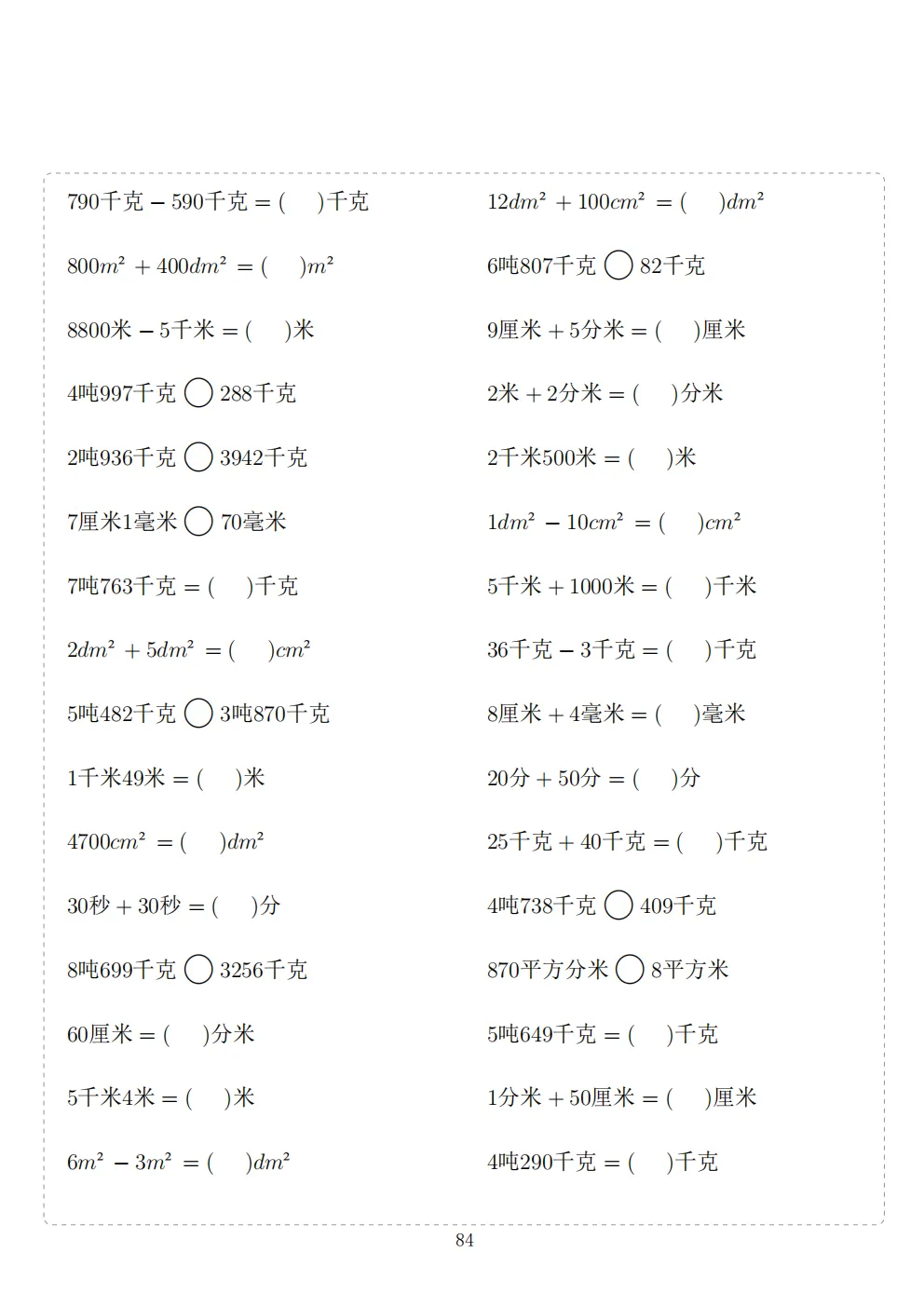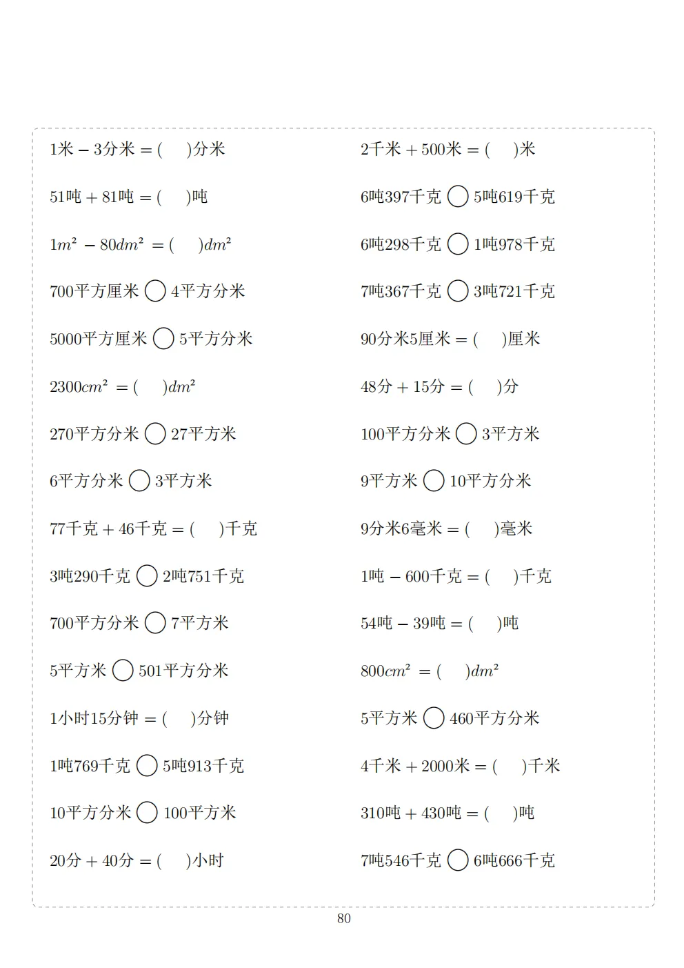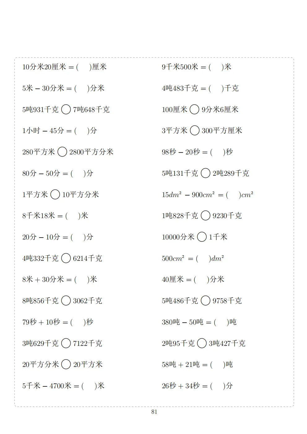 三年级下册数学计算专项练习|电子版可打印