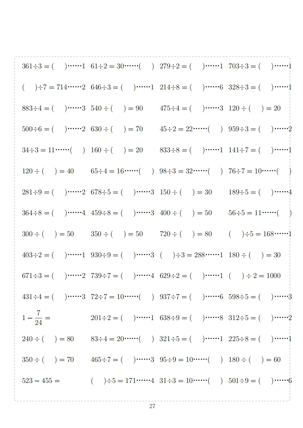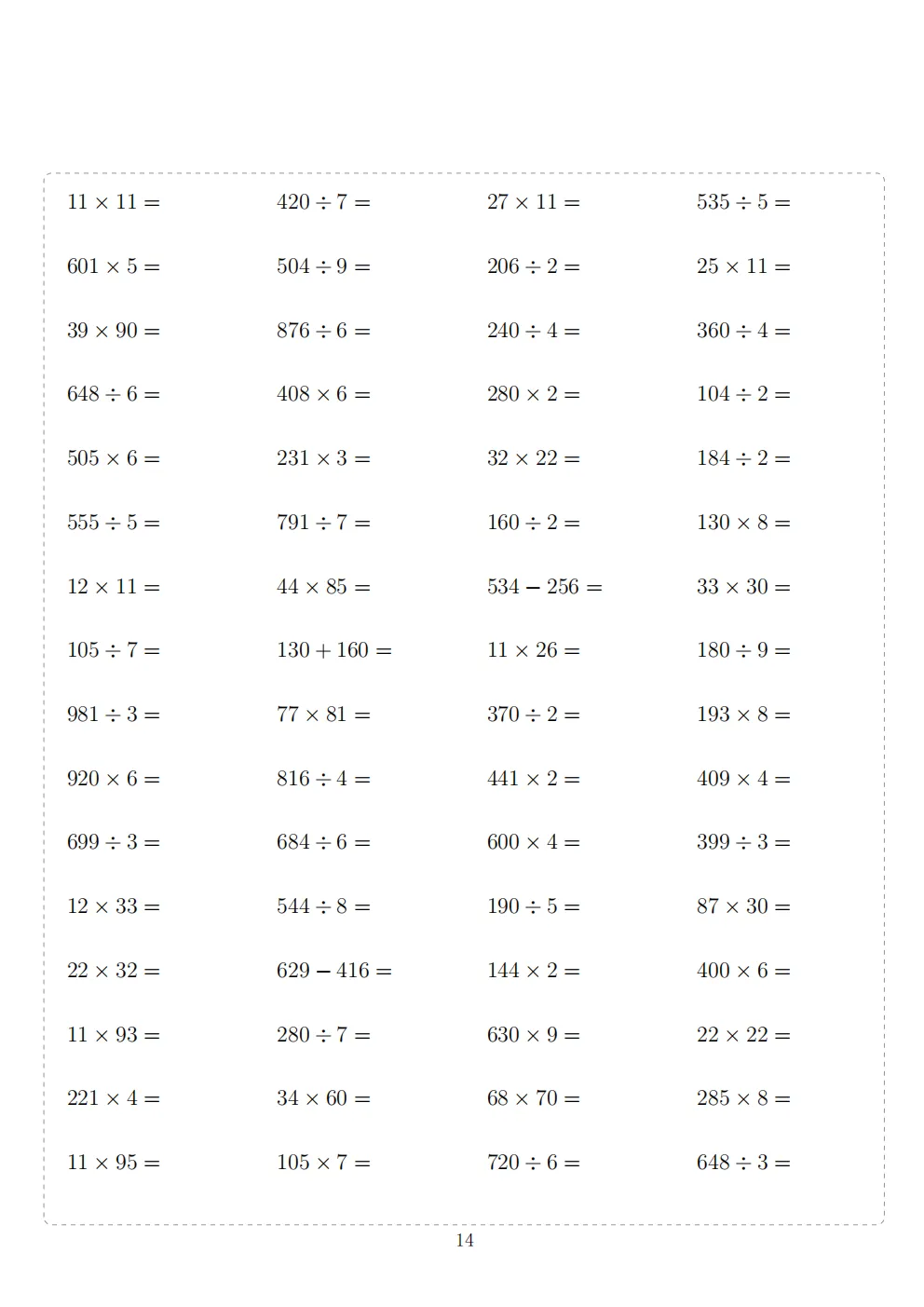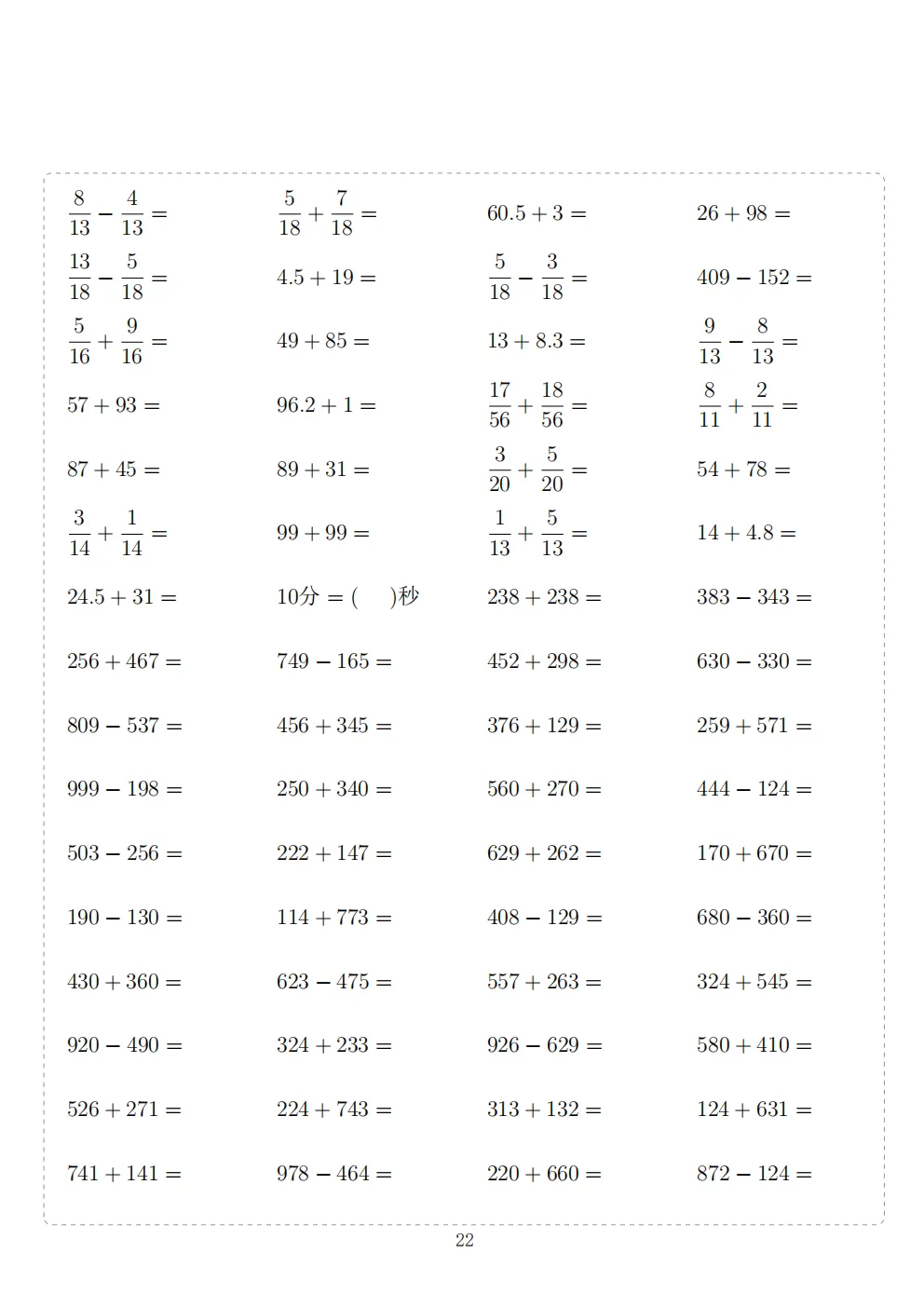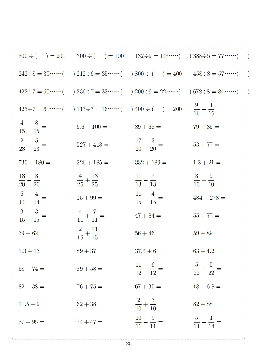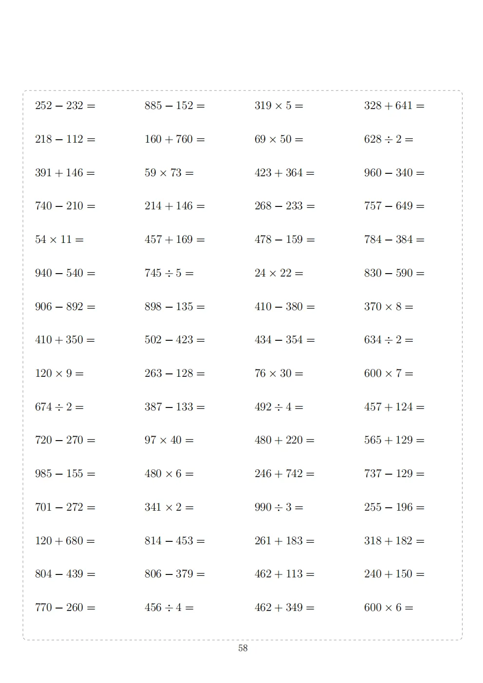 三年级下册数学计算专项练习|电子版可打印