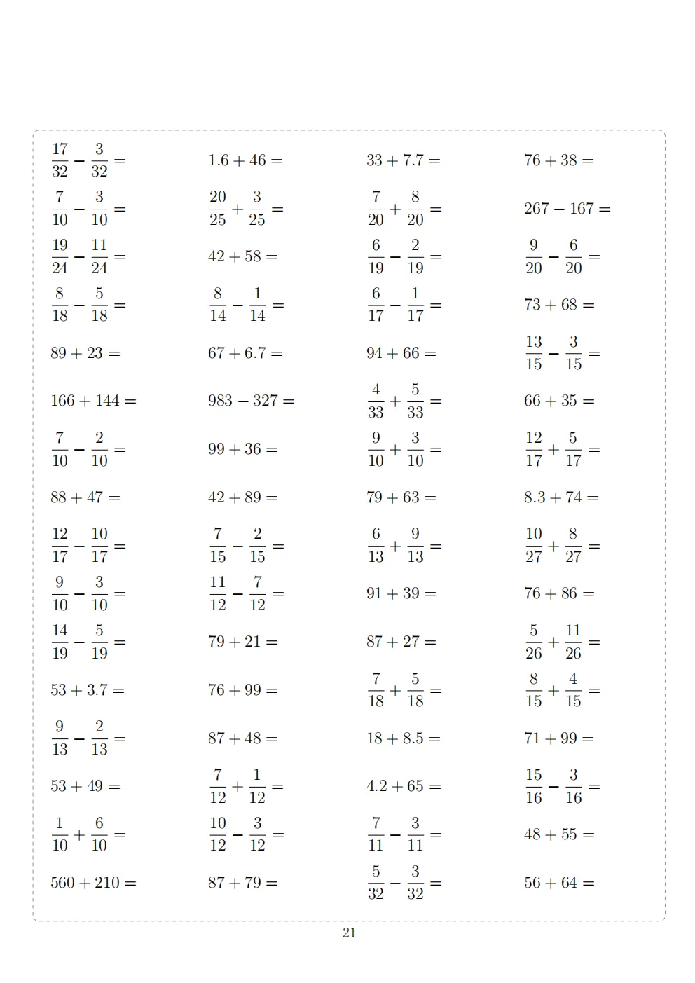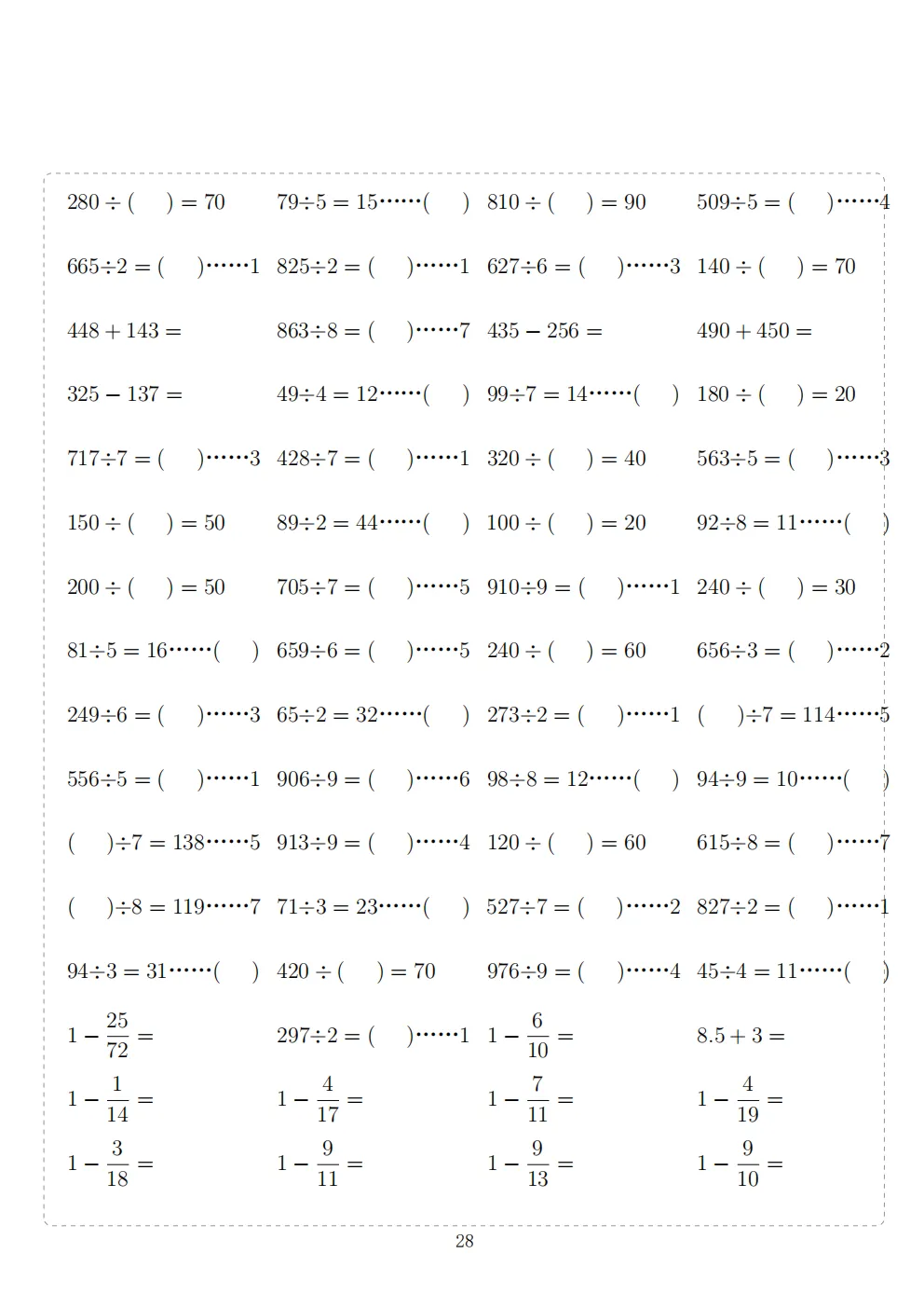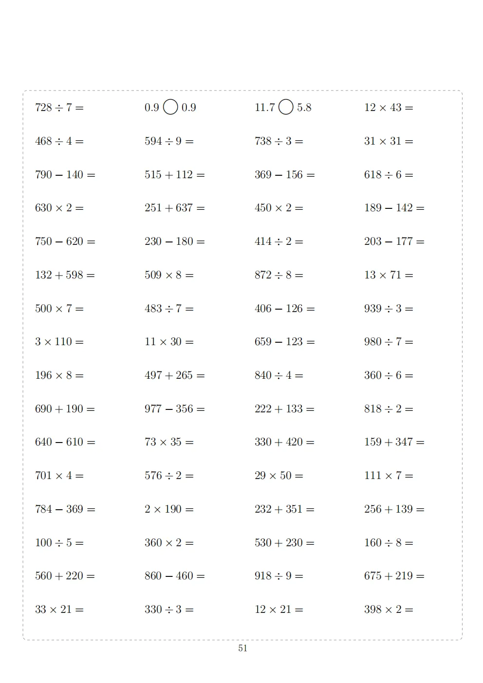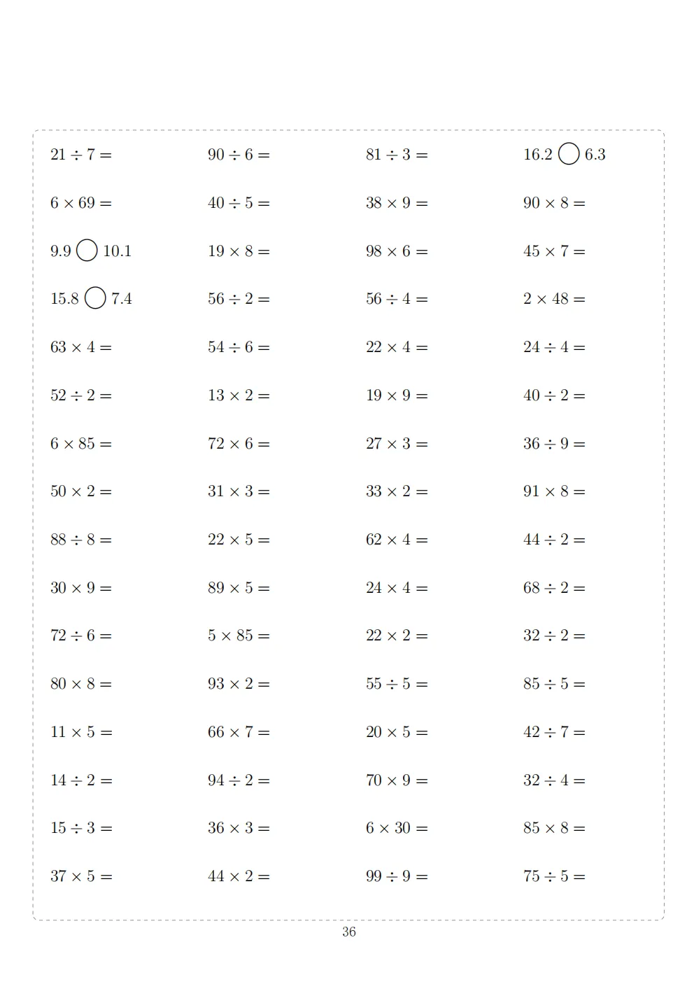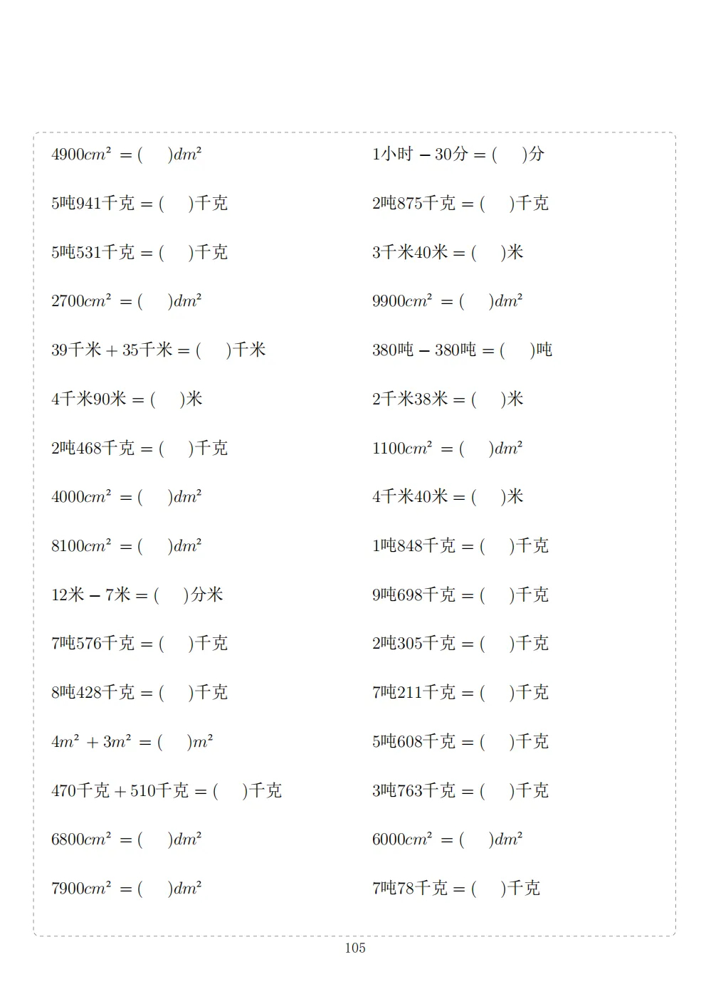三年级下册数学计算专项练习|电子版可打印
