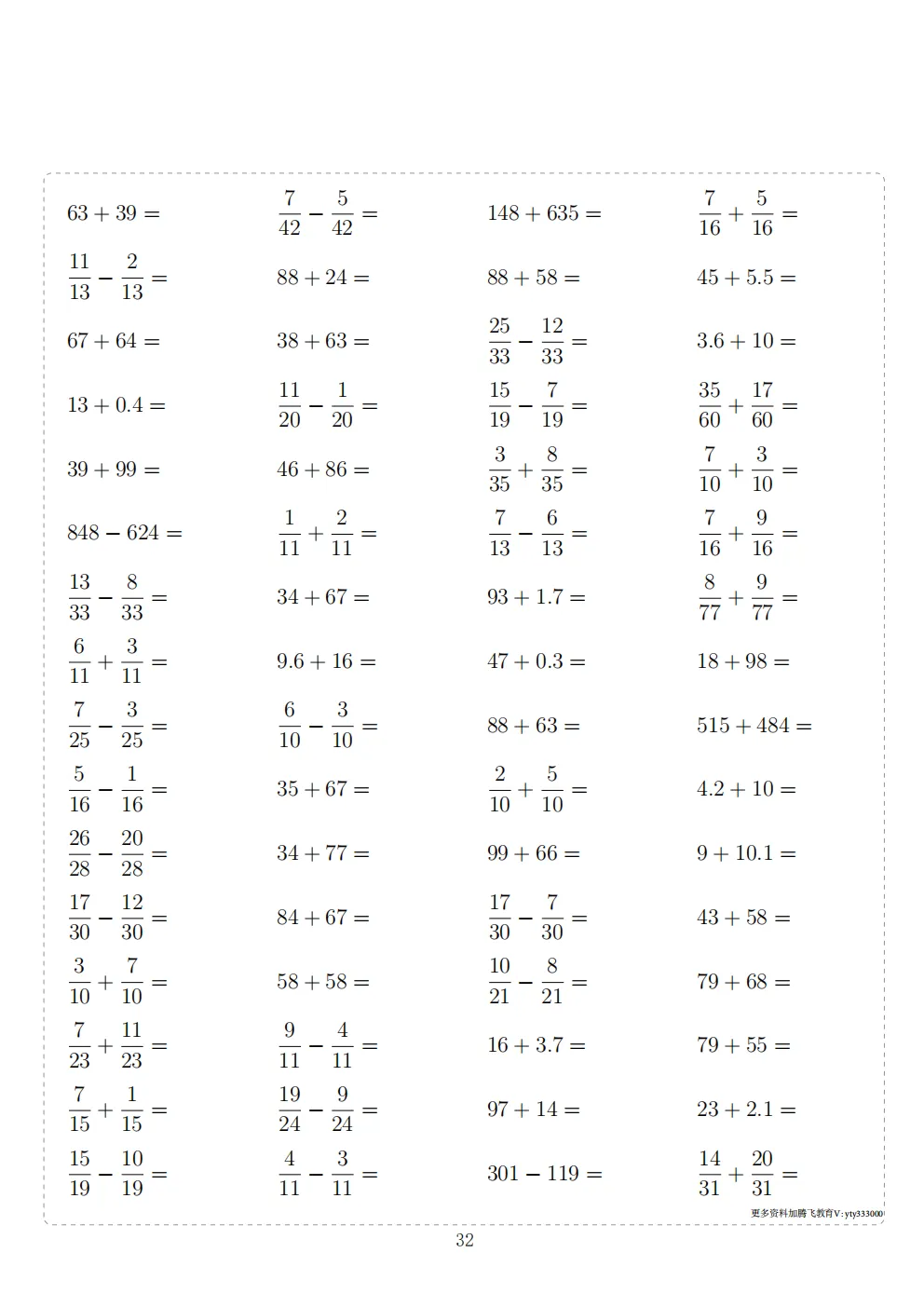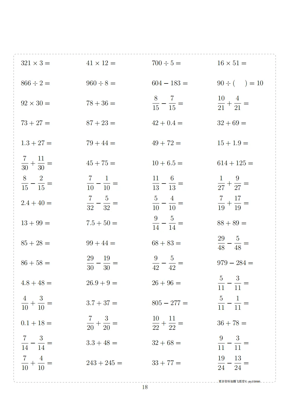 今天给大家分享:三年级下册数学计算专项练习|电子版可打印