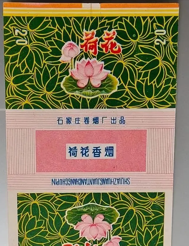 绿色包装上荷叶满铺,一朵粉色荷花开得惹人,两边竖着大字,“石家庄卷烟厂”,这款过去见得少,基本得大人出差或者走亲带回家,拆开酒席上一摆,烟盒比烟还新鲜,小时候正赶上办喜事抢香烟,细细长长的烟支点着同学偷偷照样学大人,结果咳得满屋子跑。