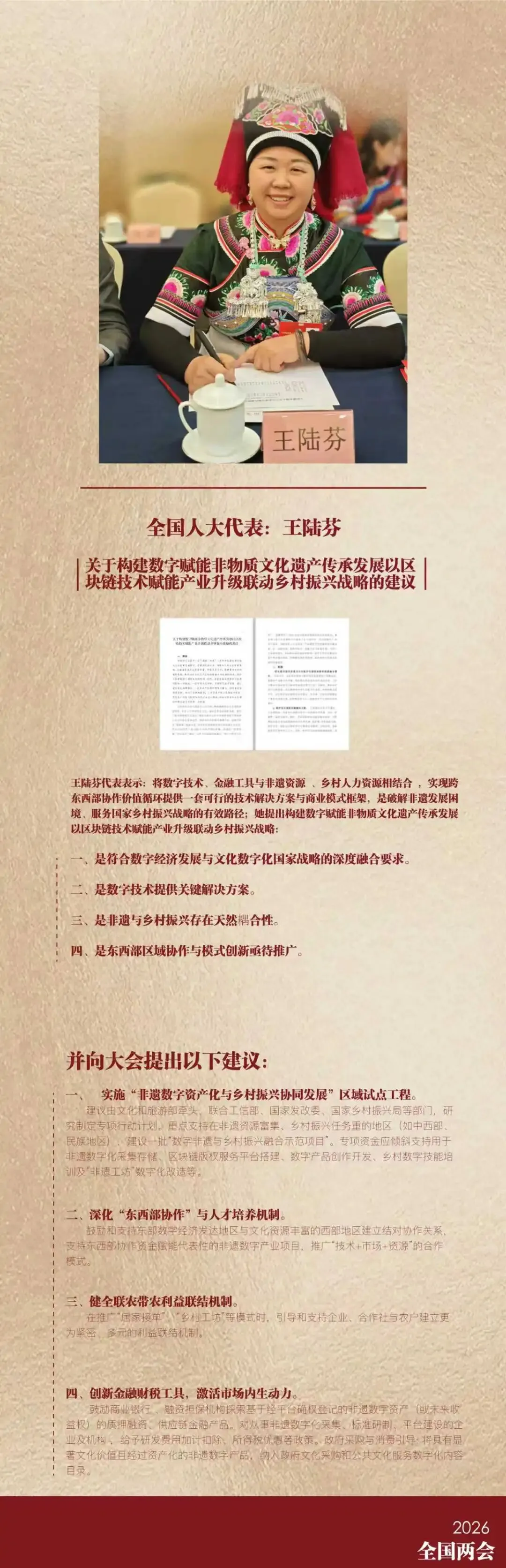 王陆芬代表在参会期间重点介绍,非遗数字化不是简单的线上展示,而是东西部区域协作的机制创新与模式创新。