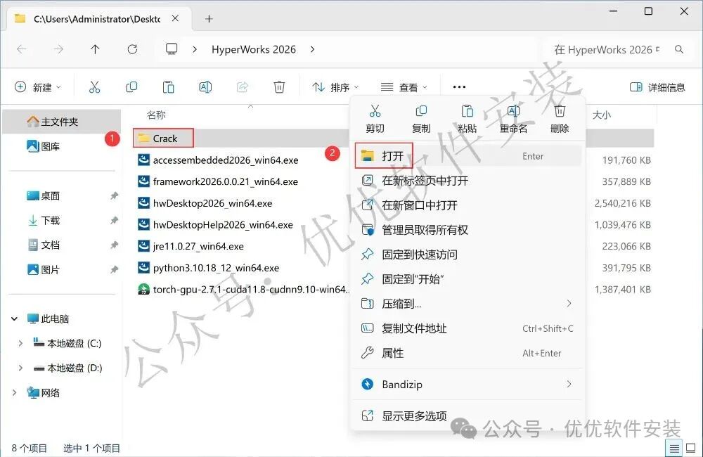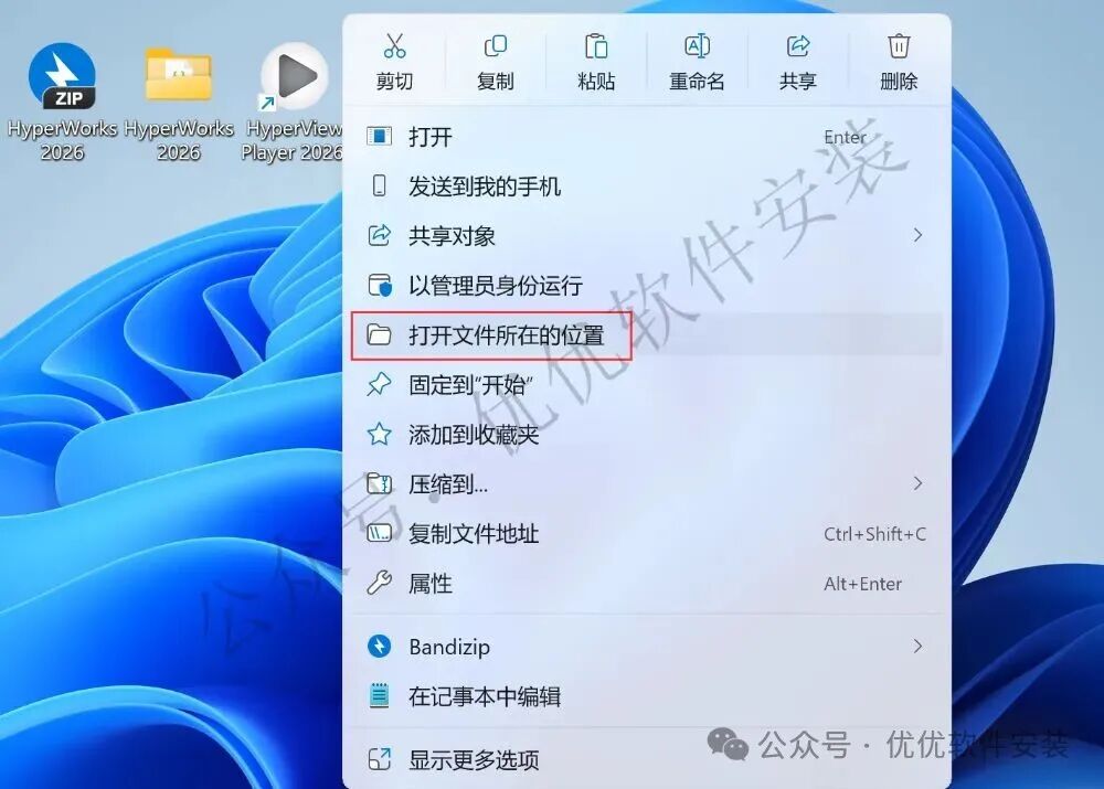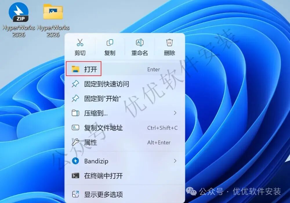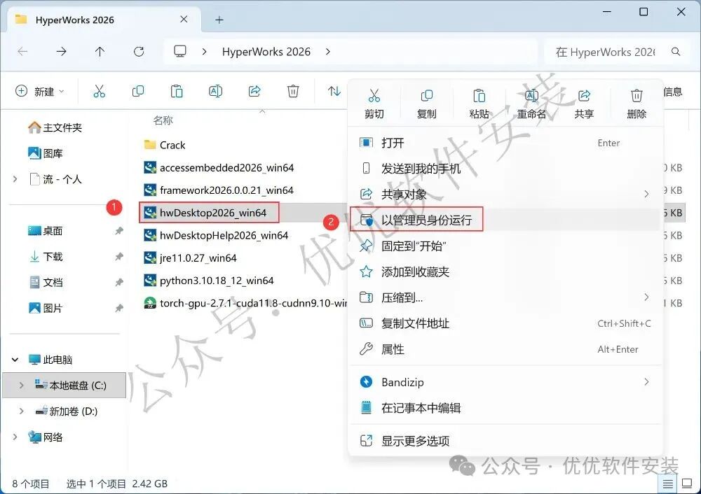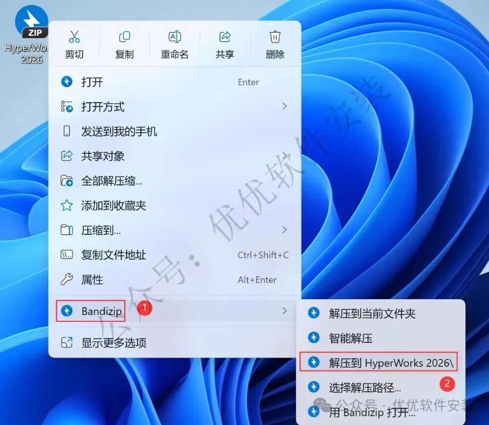 1、下载HyperWorks 2026软件安装包到电脑上,右键选择【解压到HyperWorks 2026\】