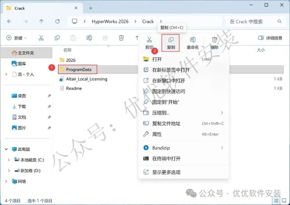 25、回到Crack文件夹,找到【2026】文件夹,再右键点击【复制按钮】