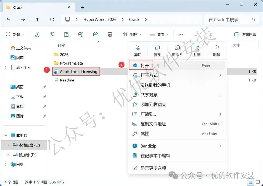 6、回到Crack文件夹,找到【Altair…Licensing】文件,再右键点击【打开】