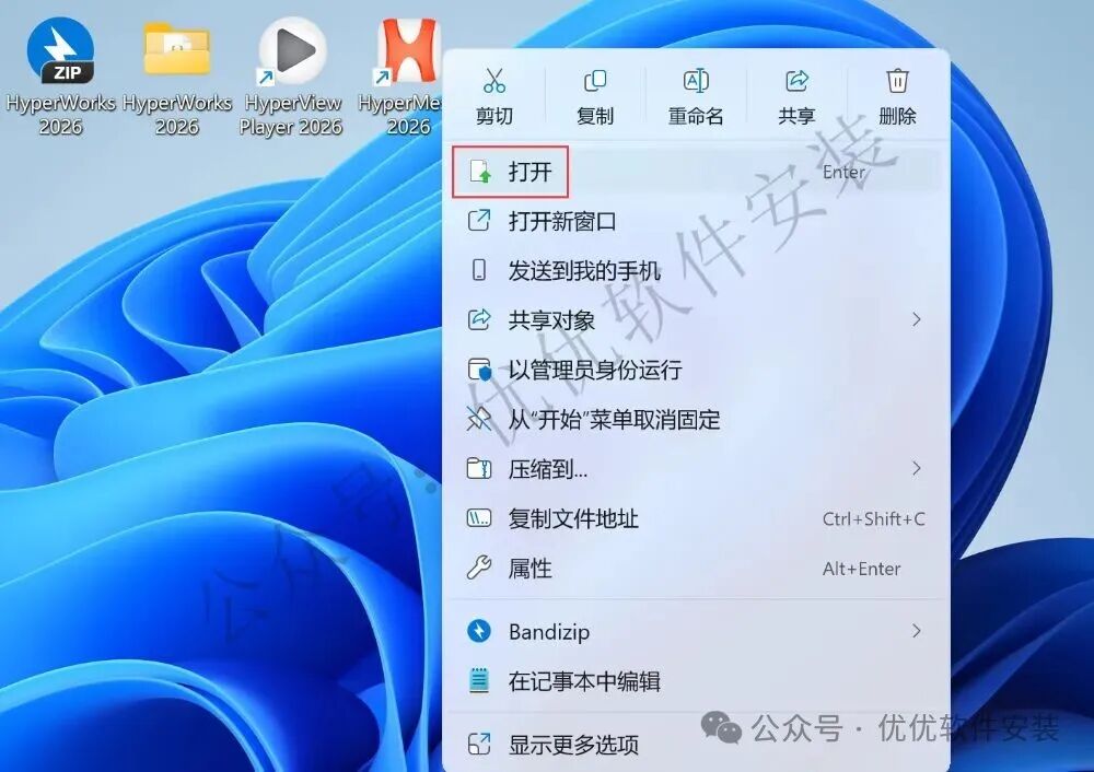 31、右键桌面上的【HyperMesh 2026软件图标】,点击【打开】
