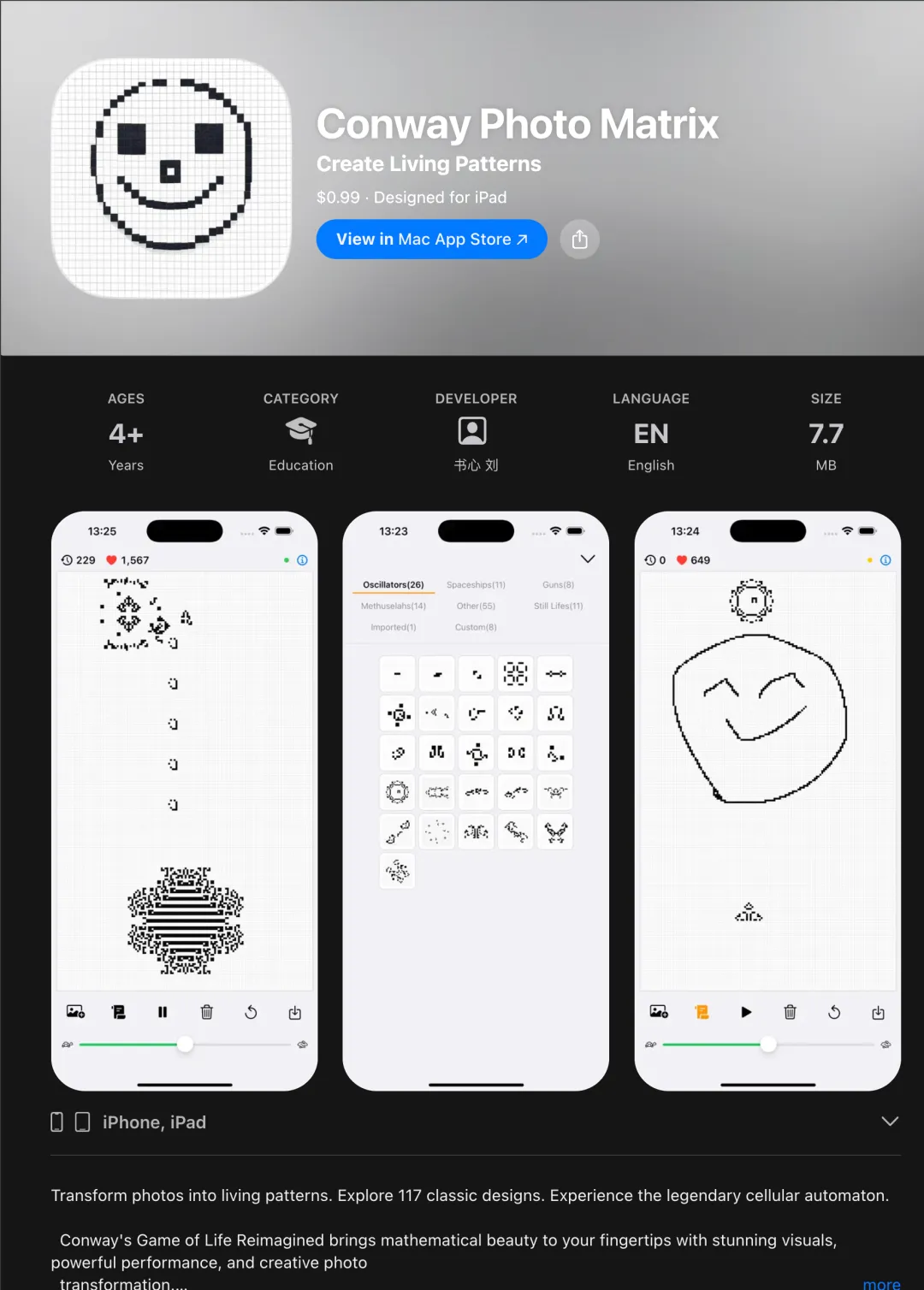 https://apps.apple.com/us/app/conway-photo-matrix/id6752801964