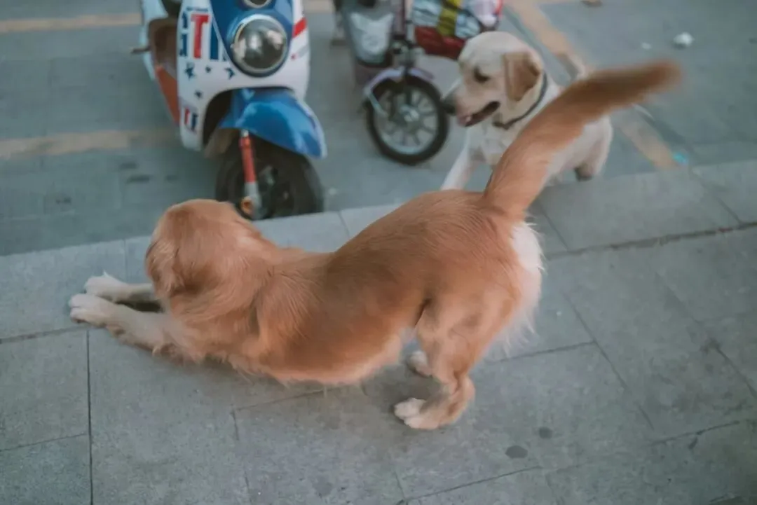 狗狗中最常见的行为语言就是摇尾巴,它们摇尾巴确实有乞怜的成份,但更常见的还是表示友好,可能是看到好友太激动了,就用摇尾巴来表达自己的喜悦之情。