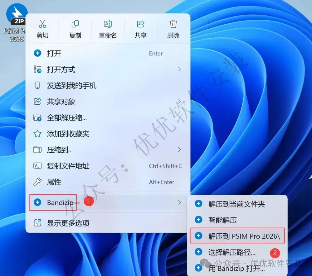 1、下载PSIM Pro 2026软件安装包到电脑上,右键选择【解压到PSIM Pro 2026\】