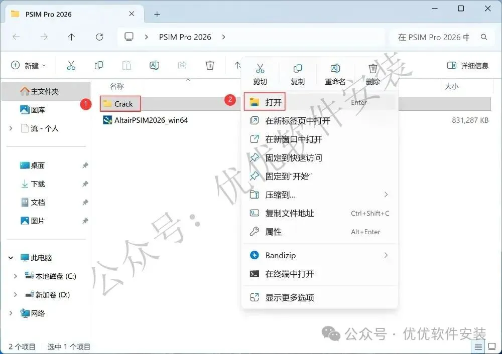 18、回到Crack文件夹,找到【Altair PSIM 2026】文件夹,右键【打开】它