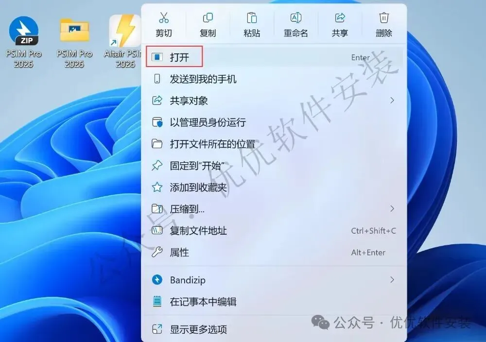 23、回到桌面,右键桌面上的【PSIM 2026.0软件图标】,点击【打开】