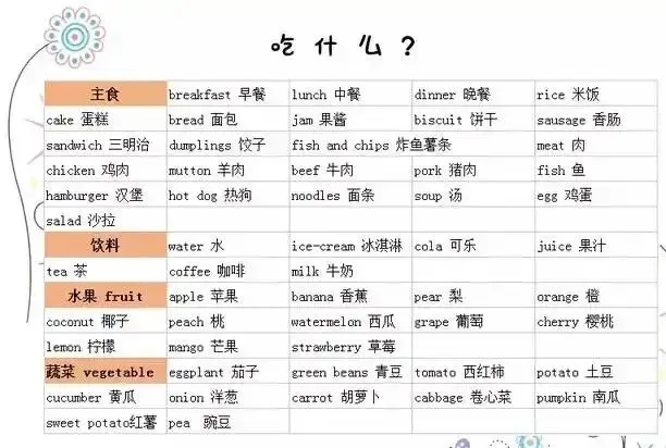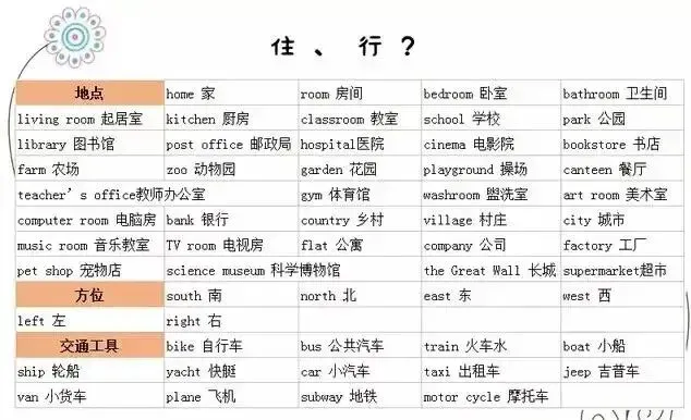 可打印丨小学英语必须掌握的衣、食、住、行常用英语单词汇总,为孩子收藏!