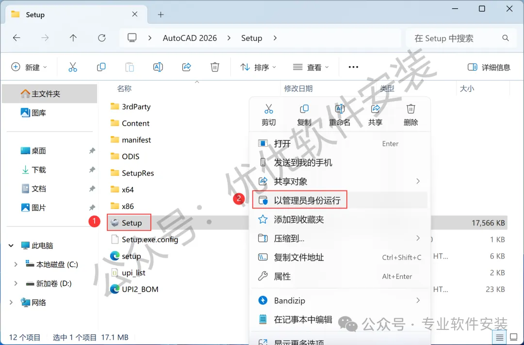 4、找到【Setup】应用程序,右键选择【以管理员身份运行】它