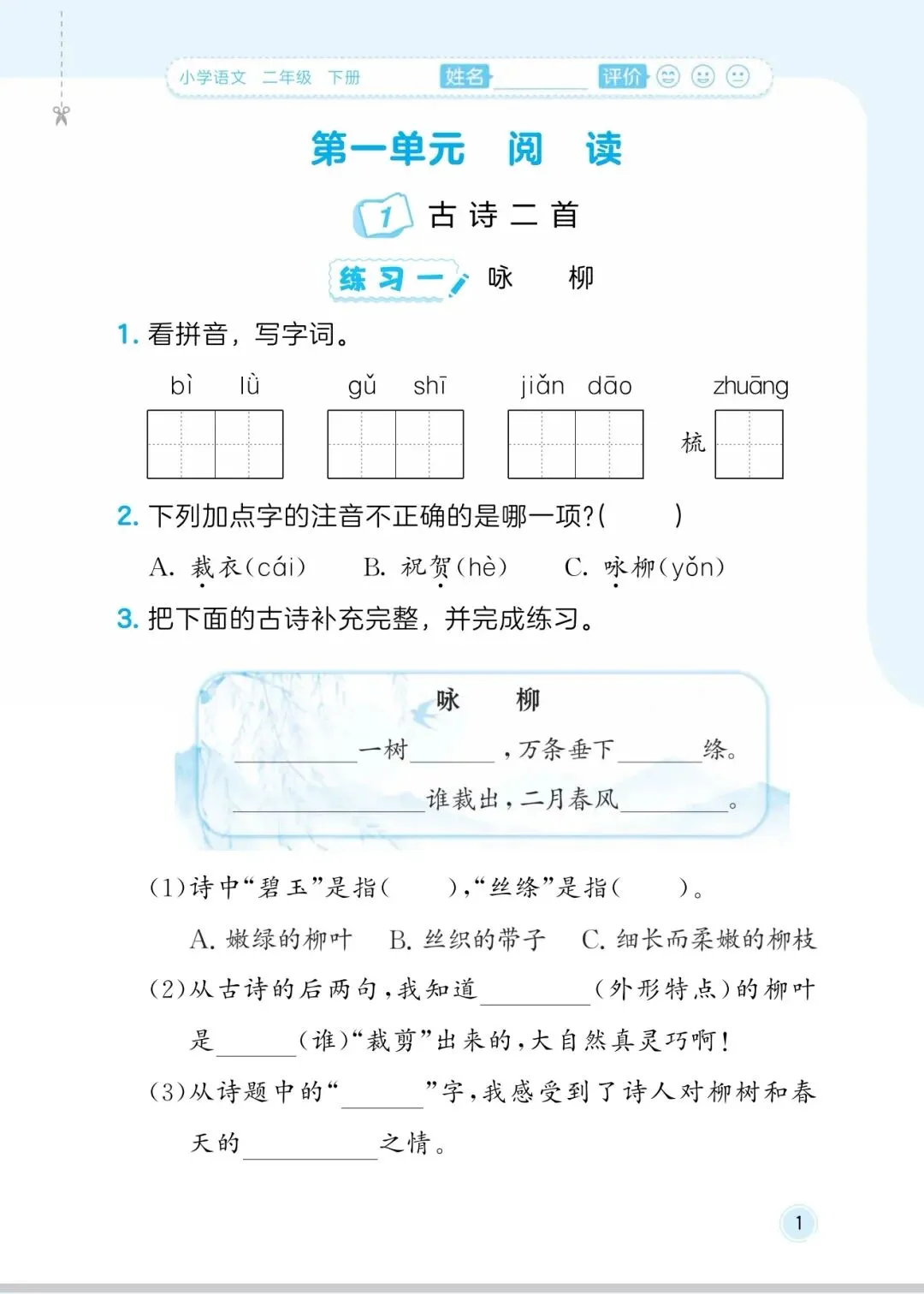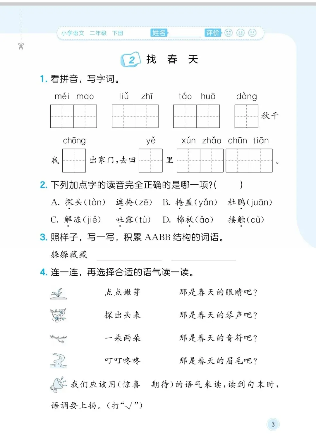 26春《二年级语文5+3随堂测》电子版可打印