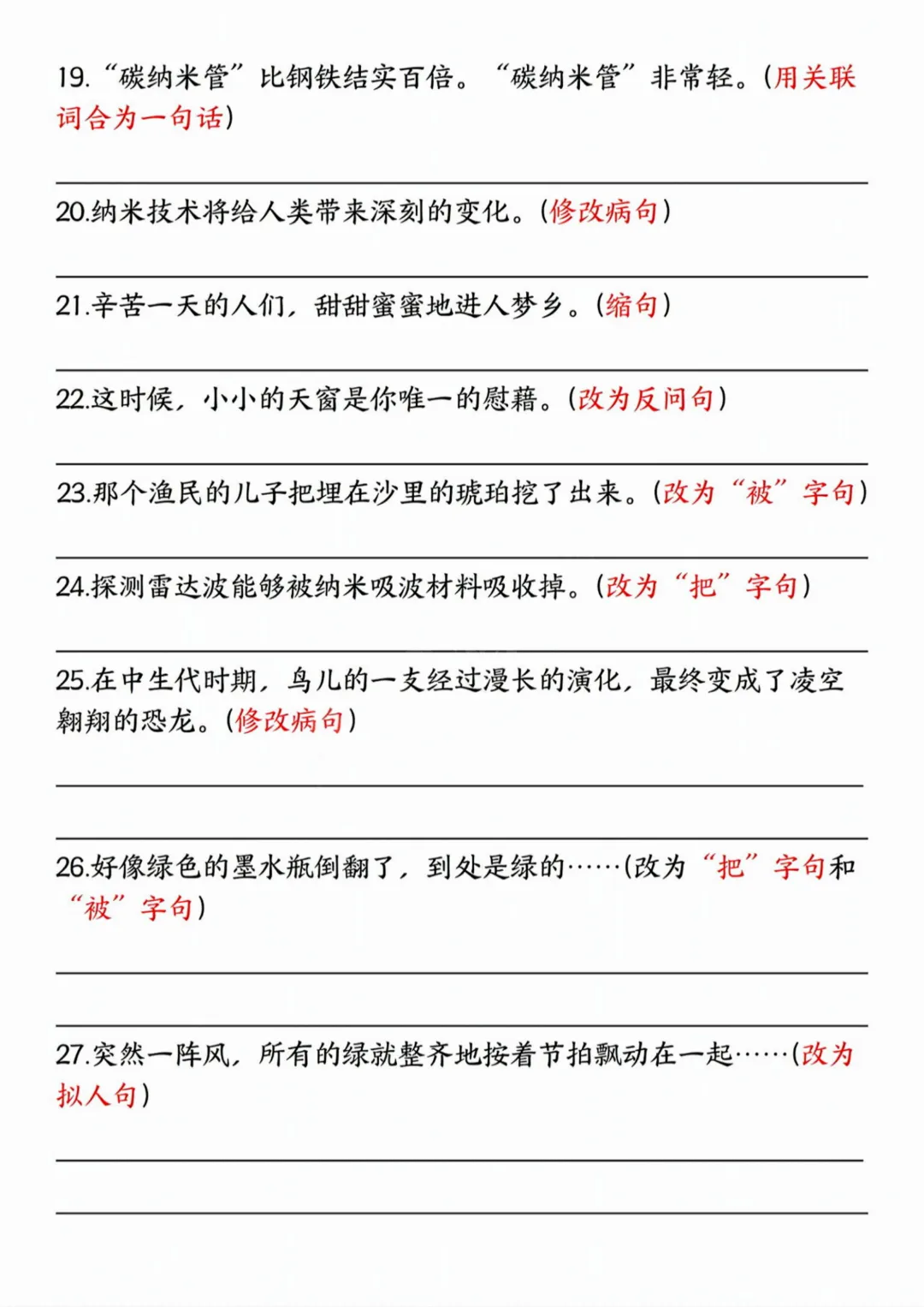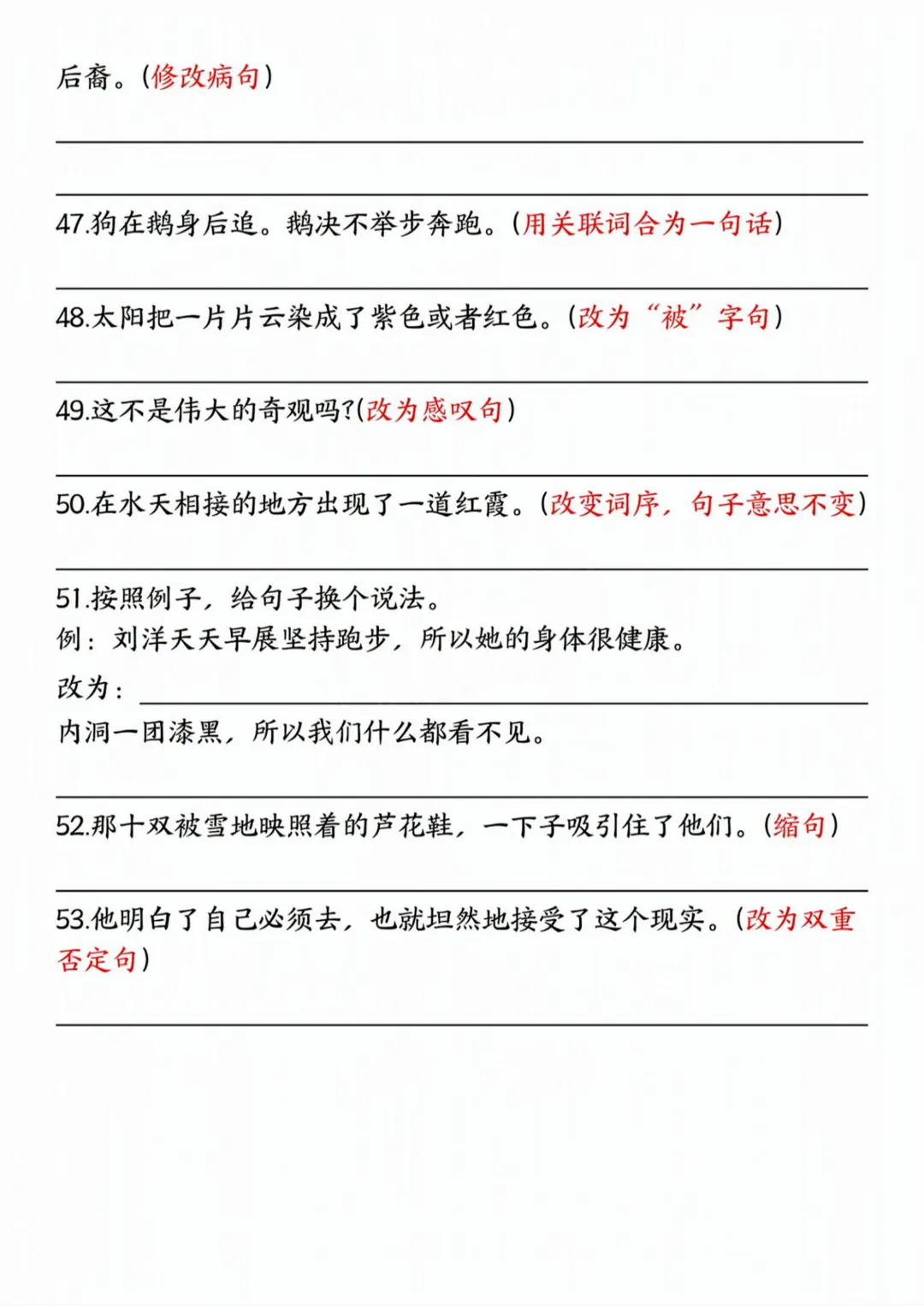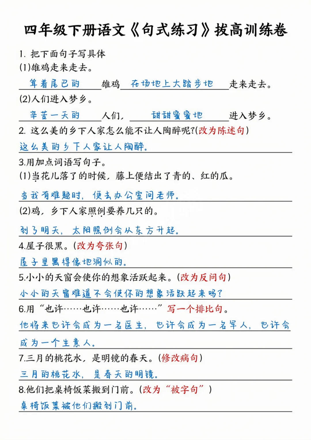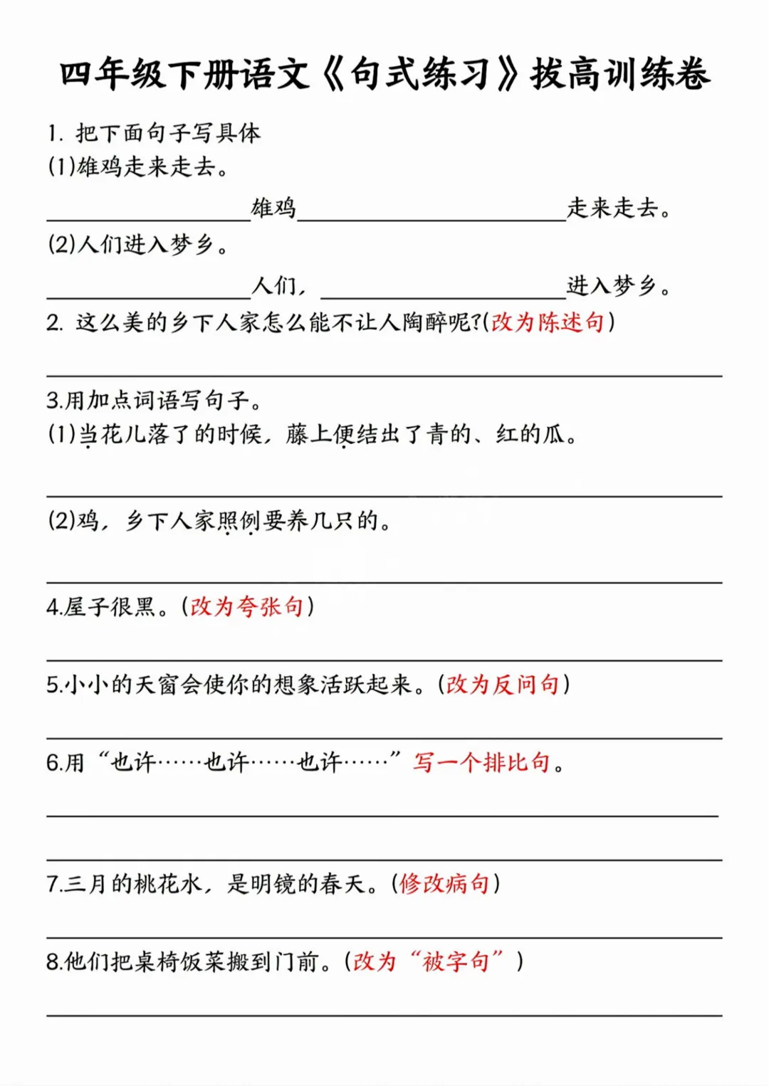 26春四年级下册语文《句式练习拔高训练卷》完整高清电子版可打印