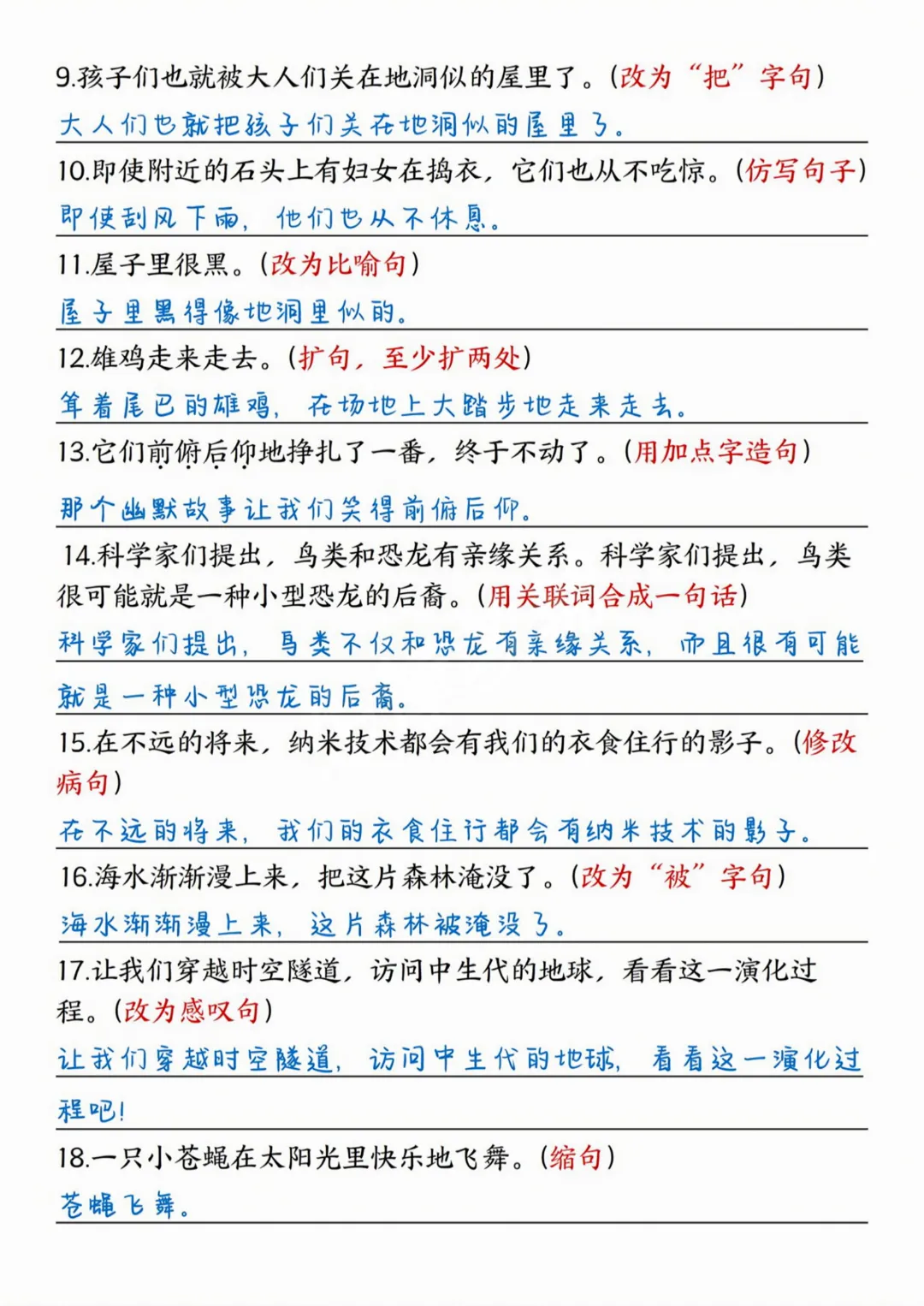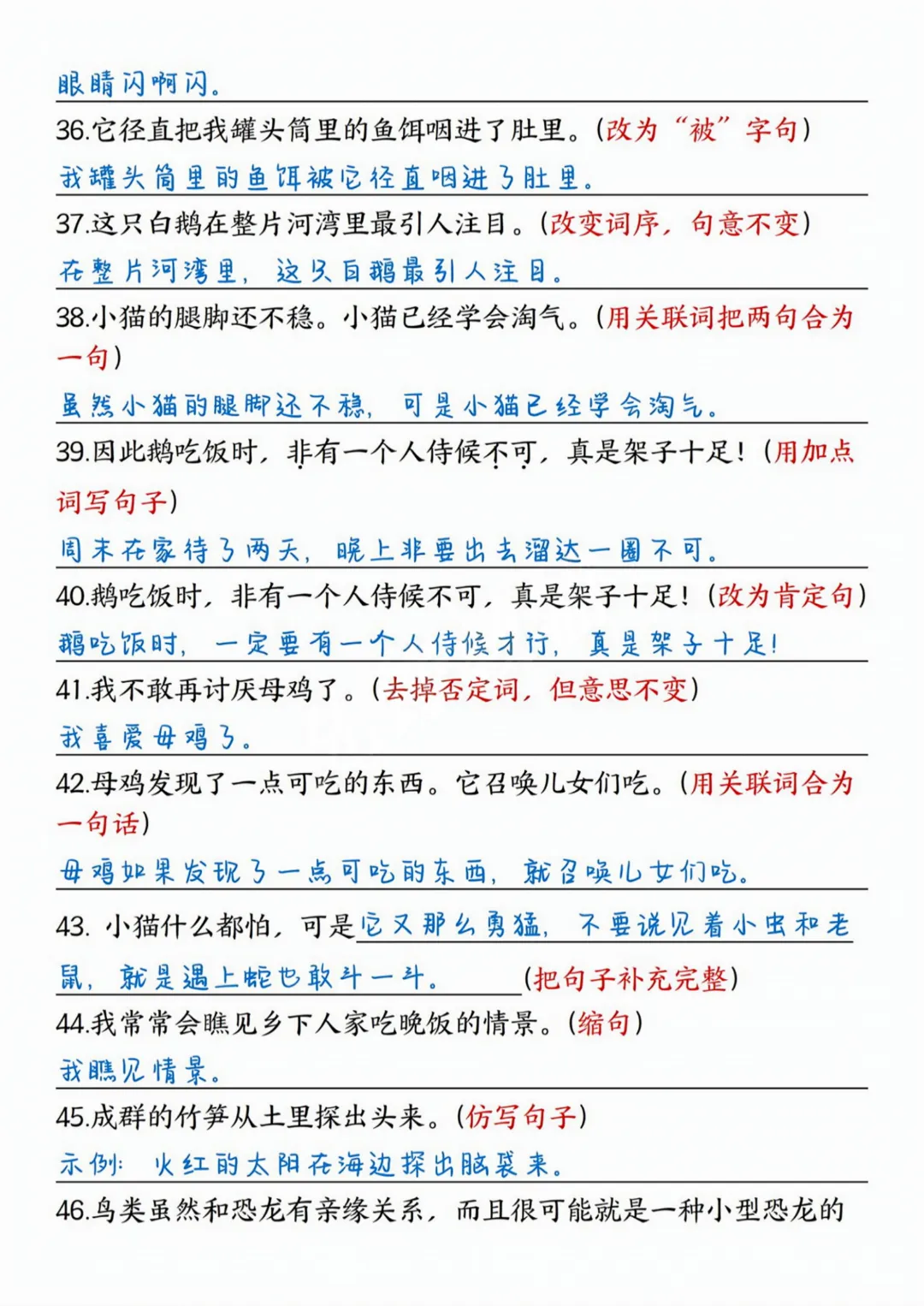26春四年级下册语文《句式练习拔高训练卷》完整高清电子版