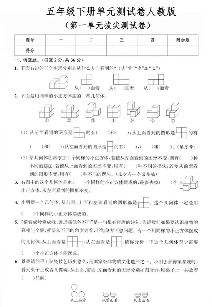 五年级下册数学第一单元测试卷 电子版 可打印