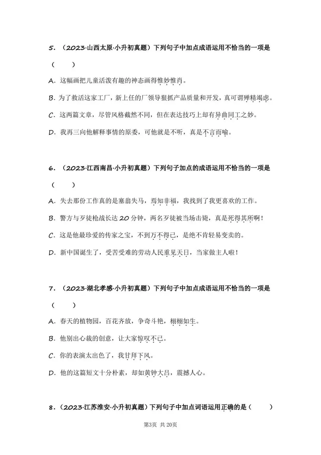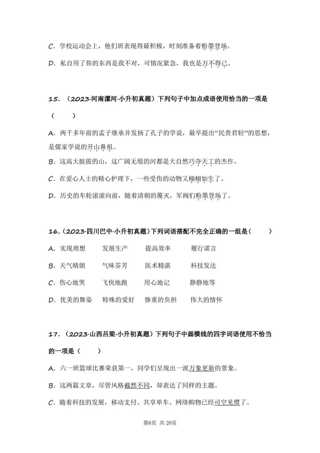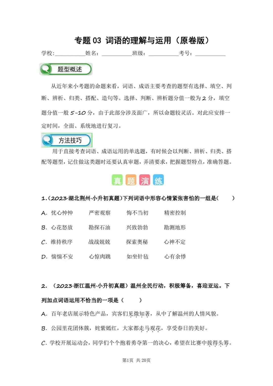 小升初语文专题二字形字义辨析(电子版可打印附答案)