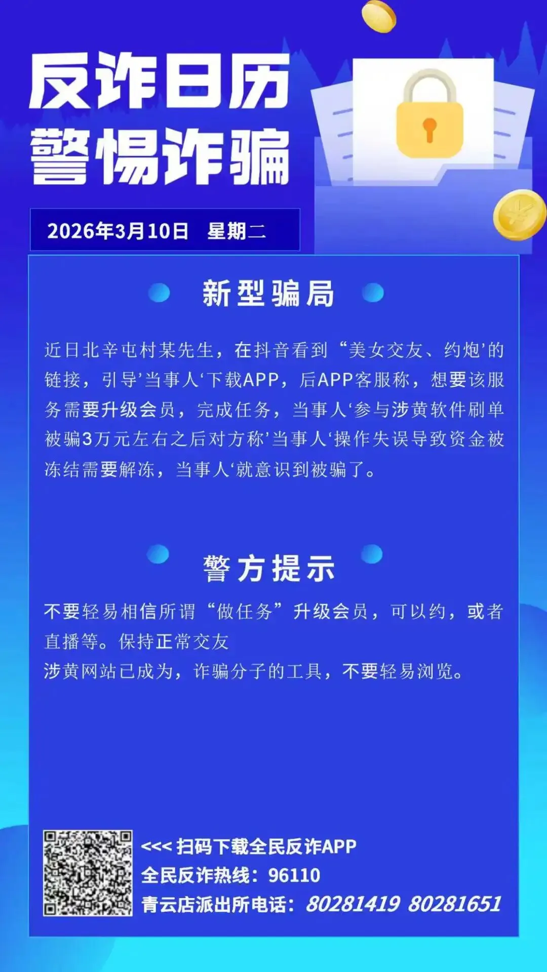 反诈宣传|交友APP升级会员,北辛屯一村民被骗3万元!