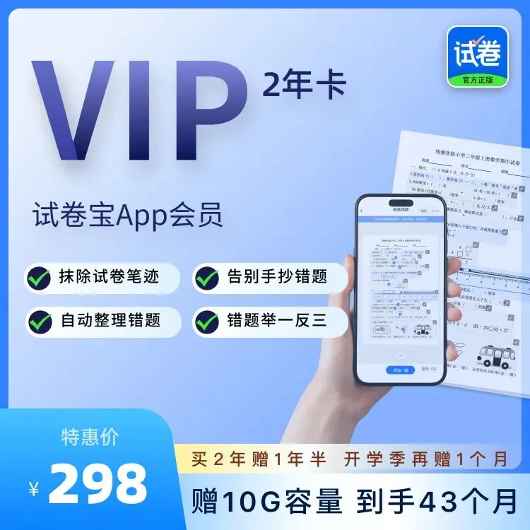 【产品名称】试卷宝VIP/SVIP 2年卡送1年半