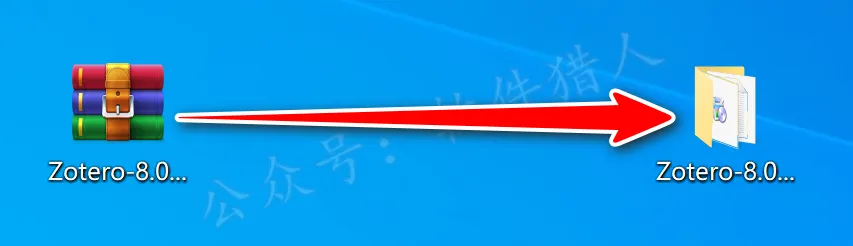 1.关注本公众号后回复“zotero”,即可获取最新安装教程(页面里附有下载链接,若失效会维护),小编将下载好的压缩包移动到桌面并右键解压到当前位置,方便安装后即将安装包删除。(没有解压软件?点我查看解压教程!)