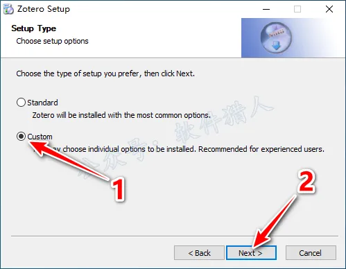 4.勾选【Custom】,点击【Next】。